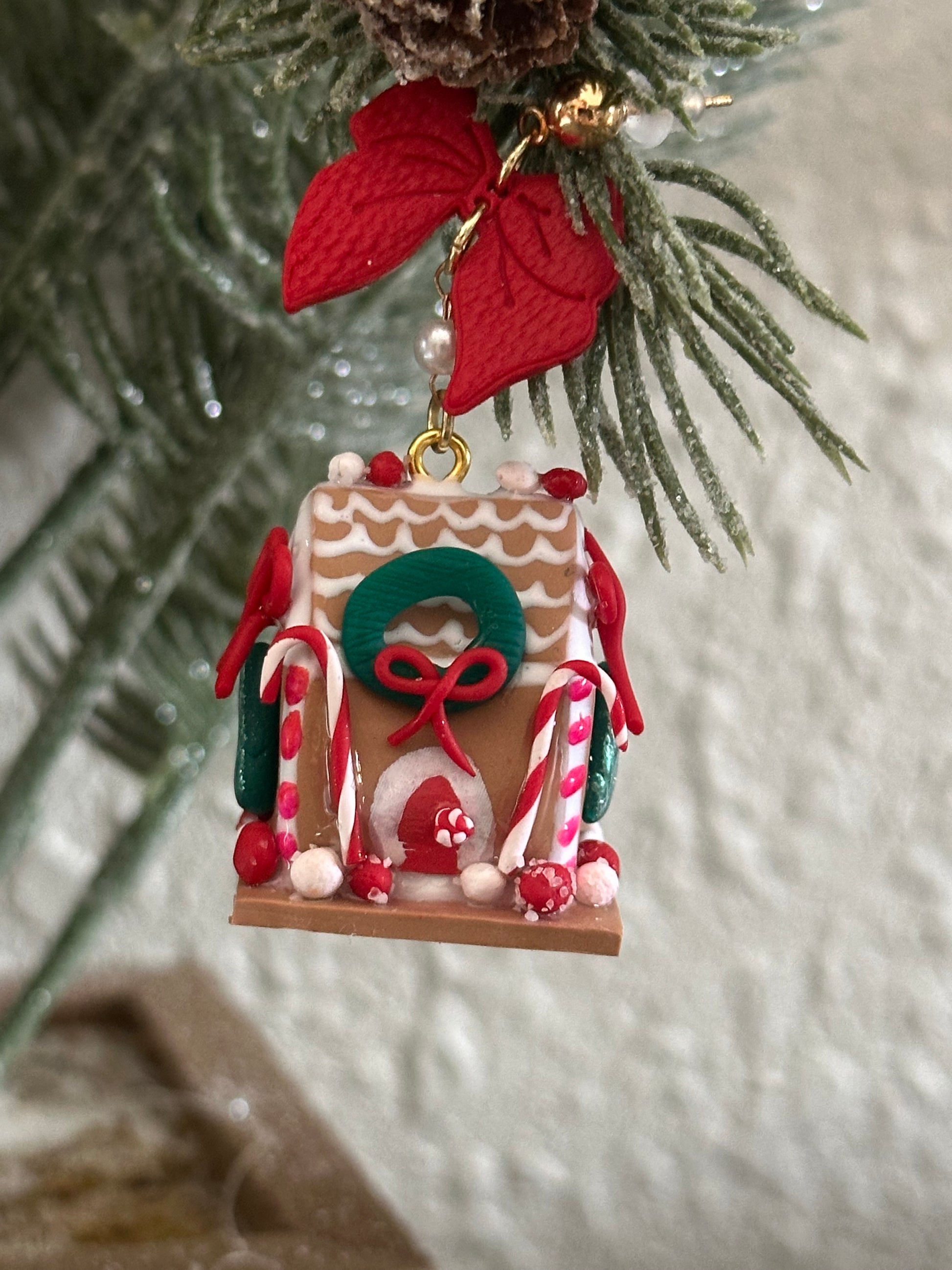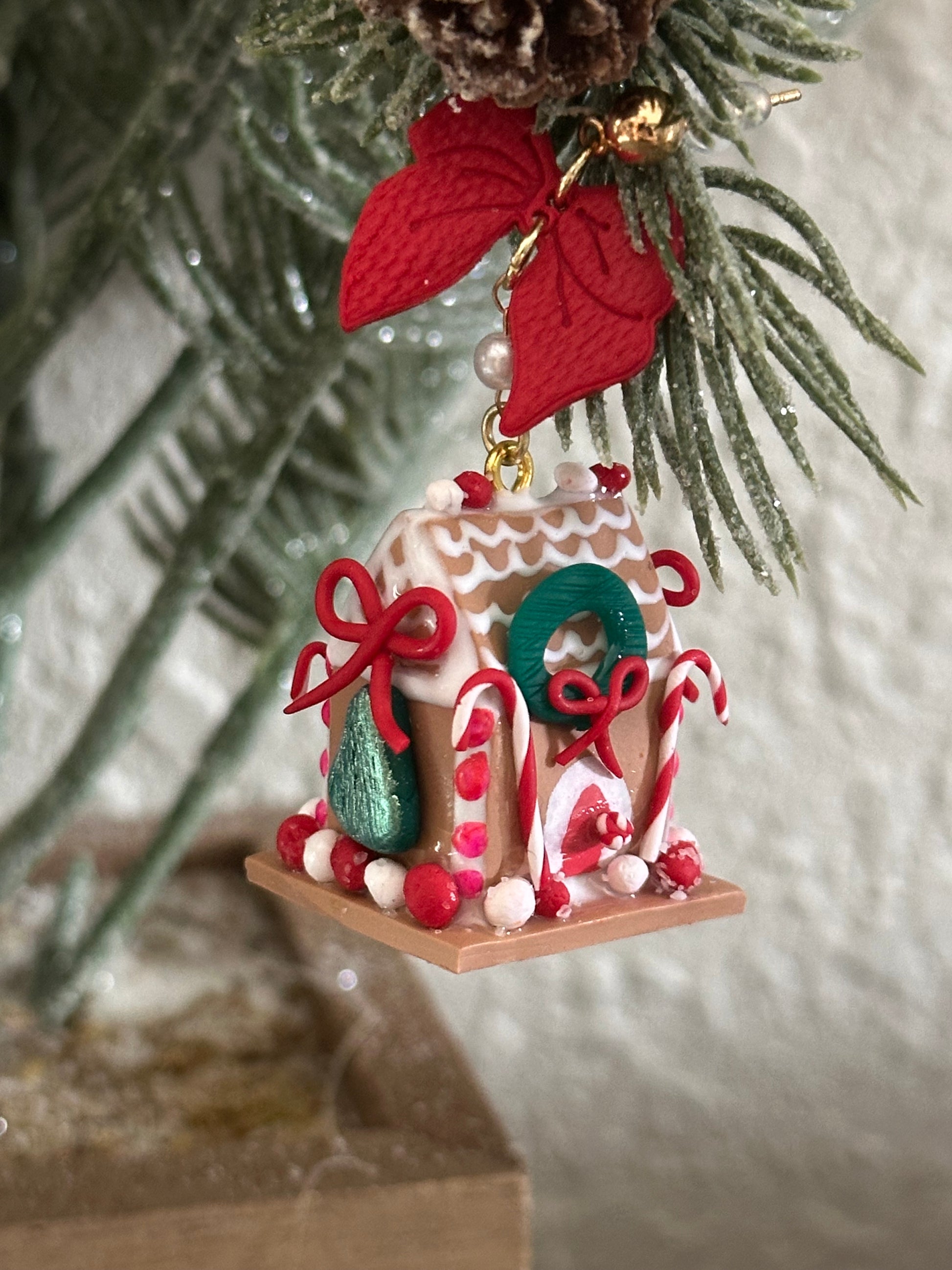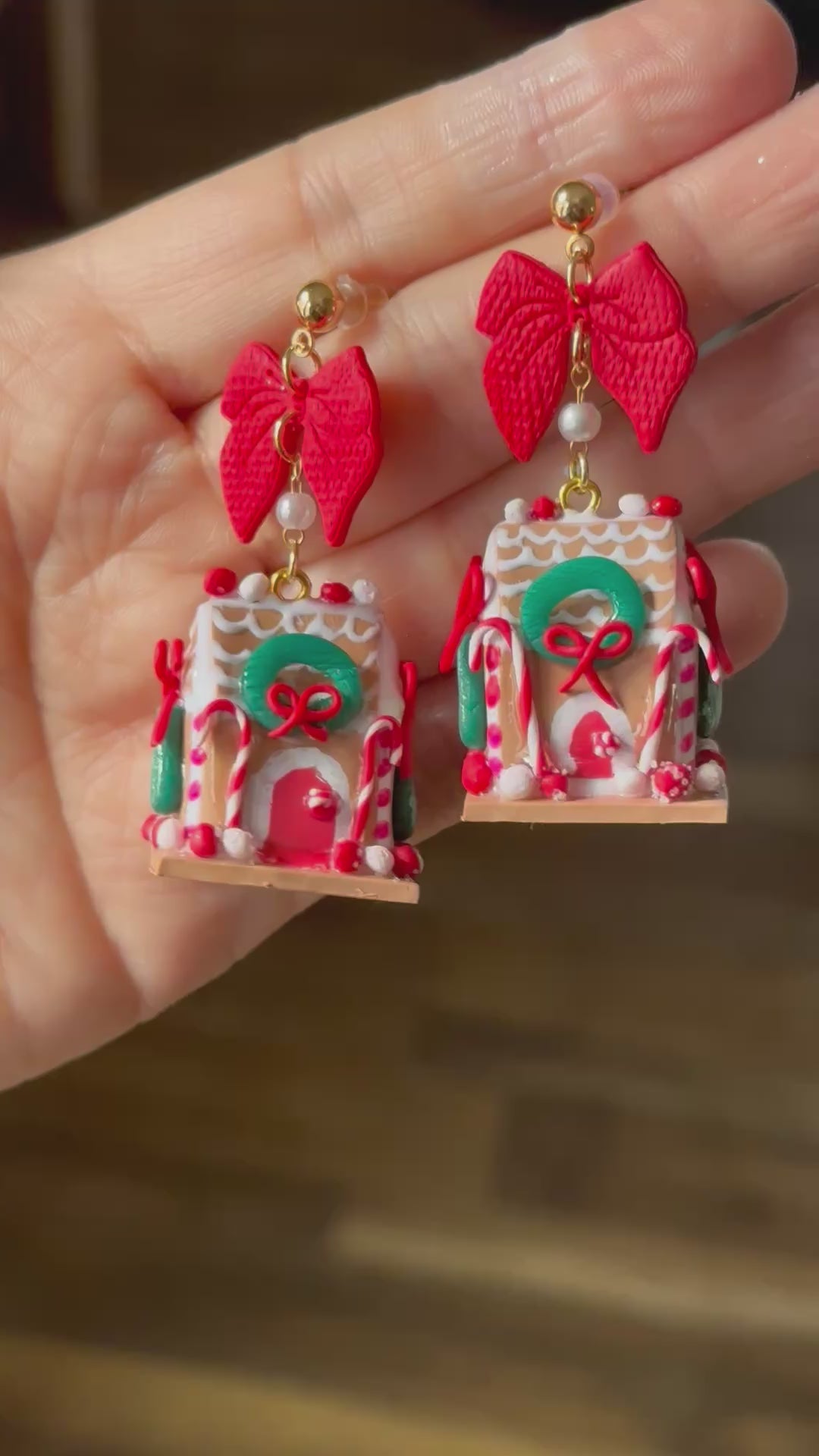 These handmade 3D Gingerbread House Earrings are a charming addition to any outfit. Carefully detailed and made to order, these unique earrings feature traditional design elements and dangle from your ears for a playful touch. Embrace the holiday spirit with these one-of-a-kind clay earrings.