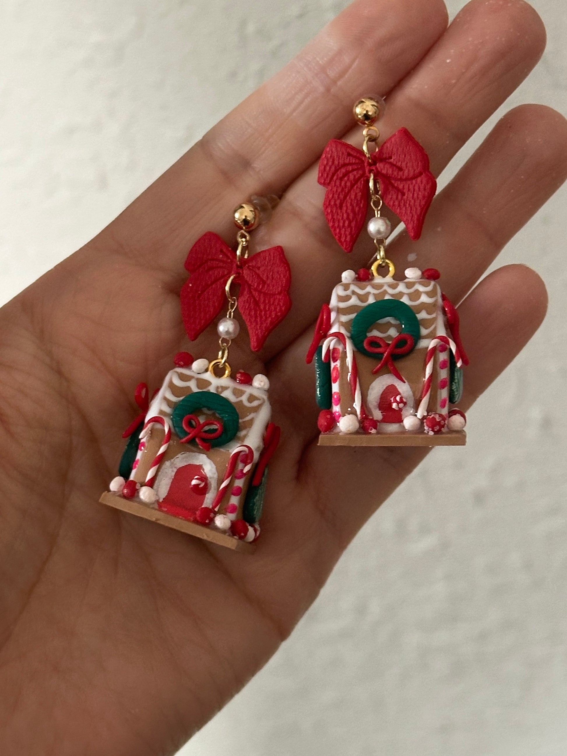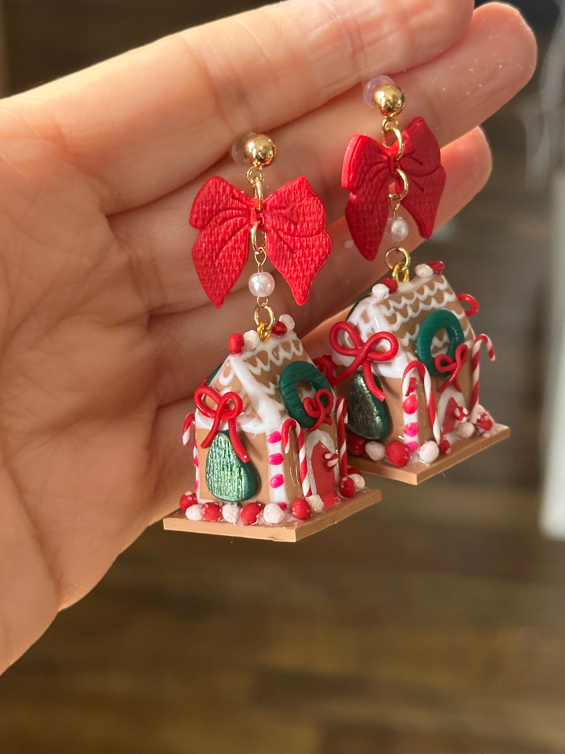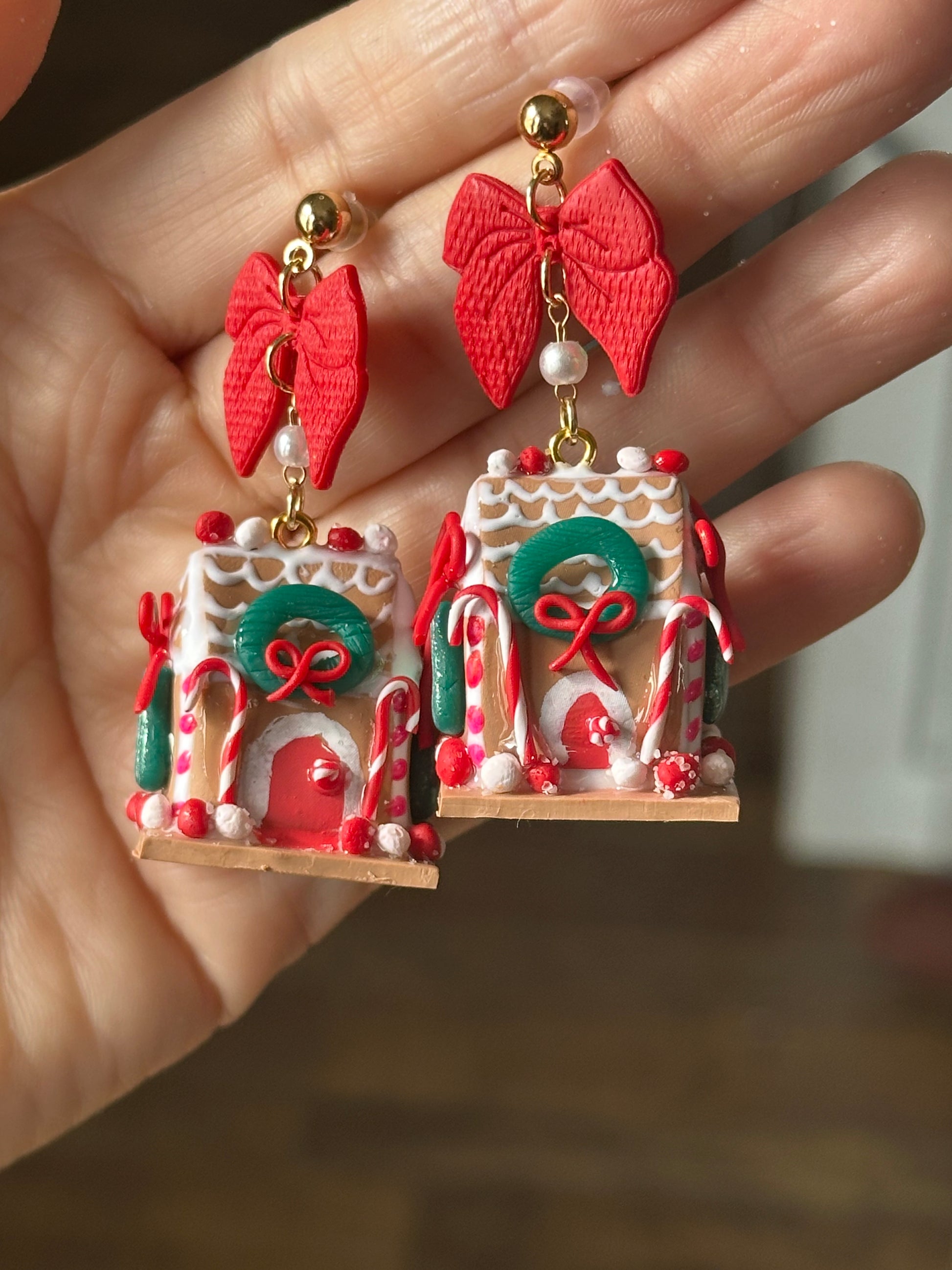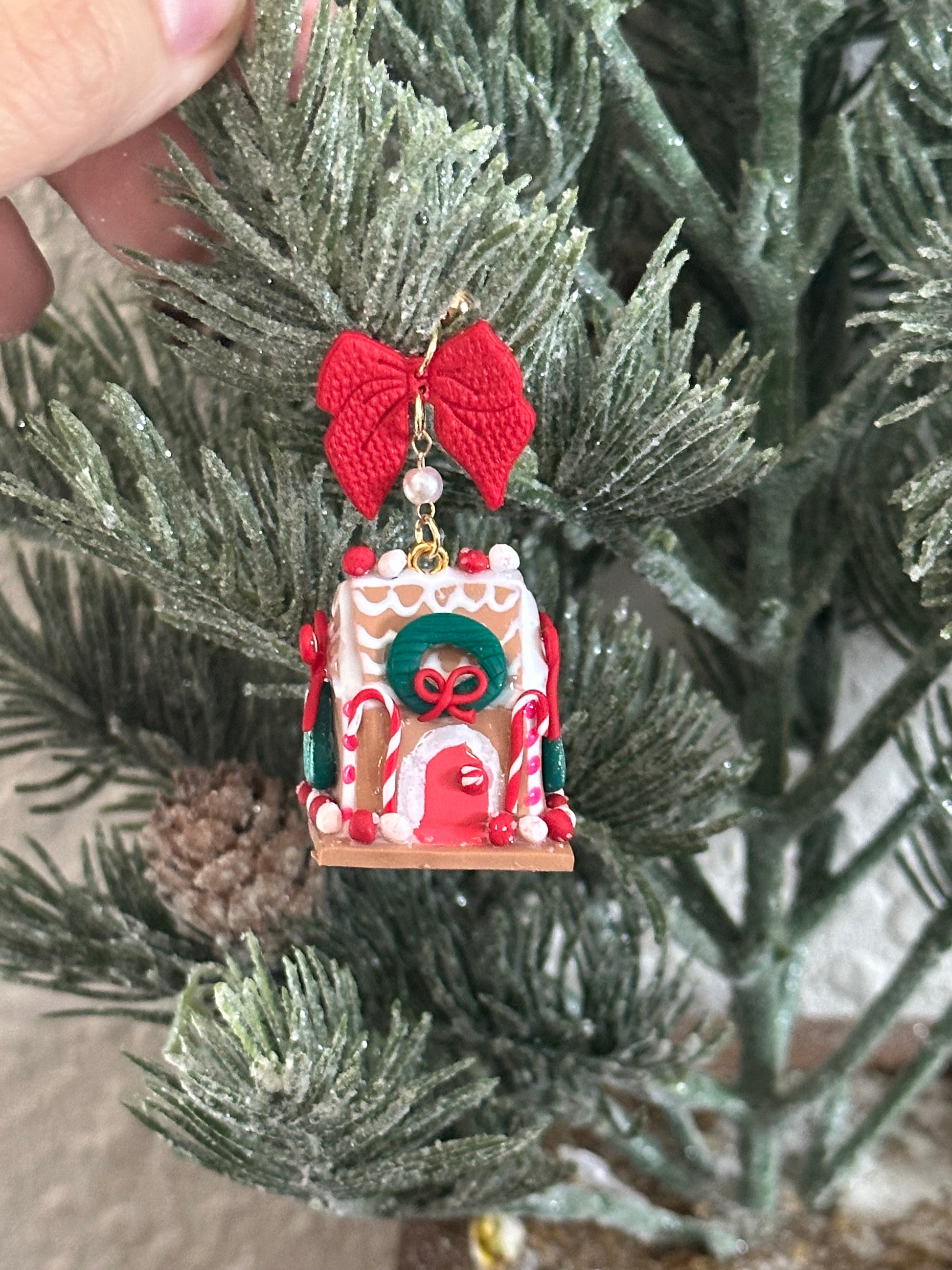 These handmade 3D Gingerbread House Earrings are a charming addition to any outfit. Carefully detailed and made to order, these unique earrings feature traditional design elements and dangle from your ears for a playful touch. Embrace the holiday spirit with these one-of-a-kind clay earrings.