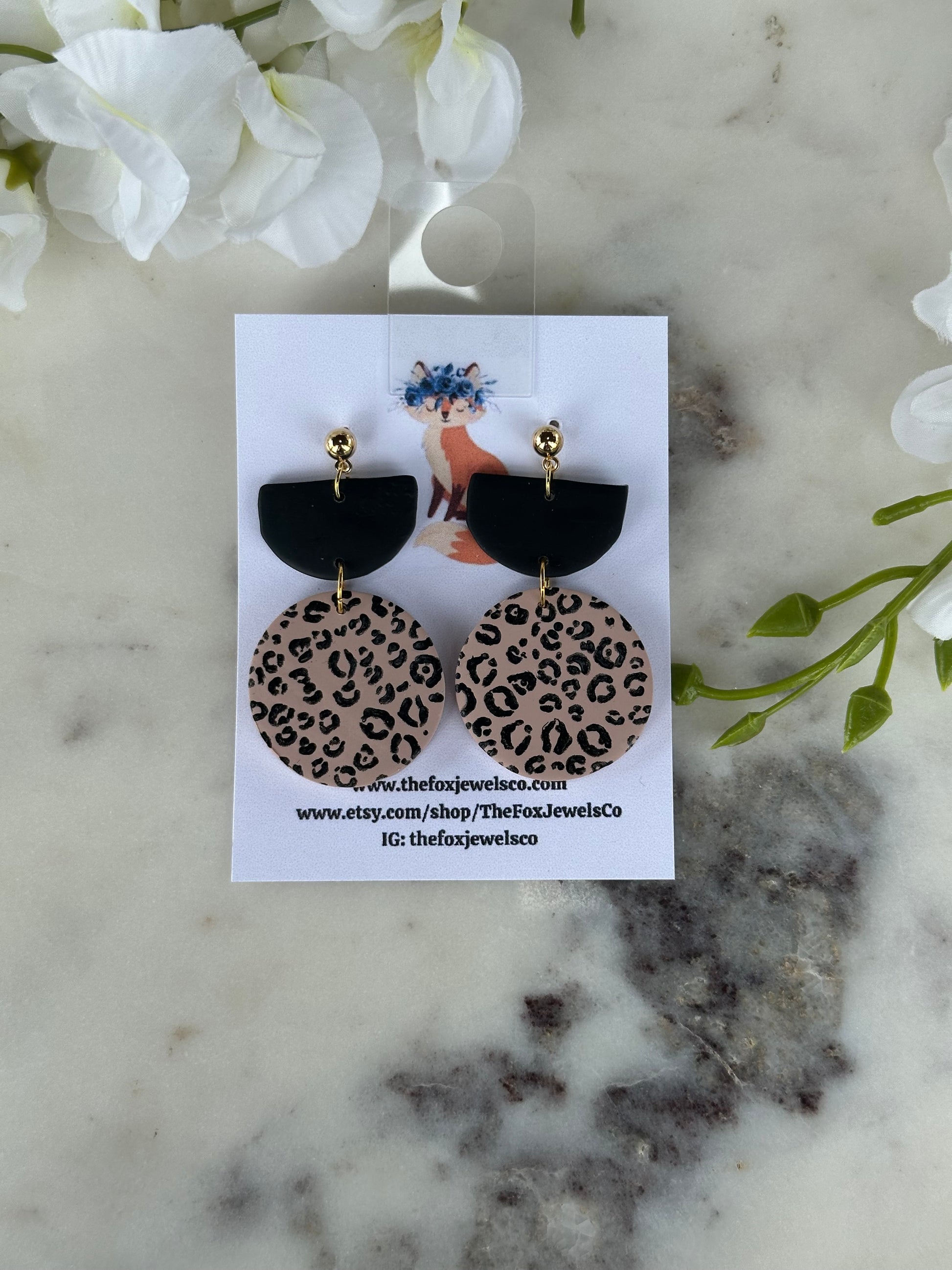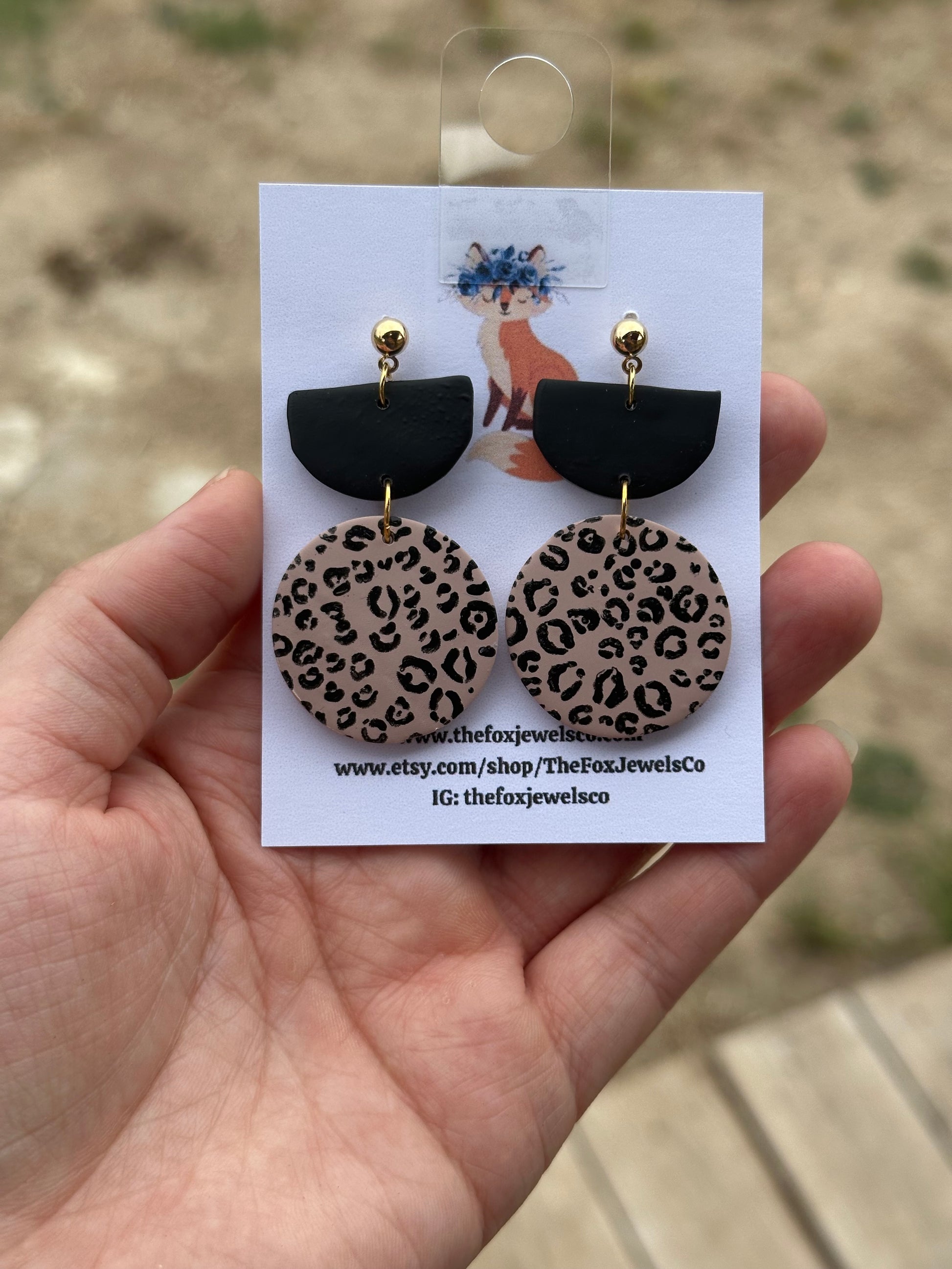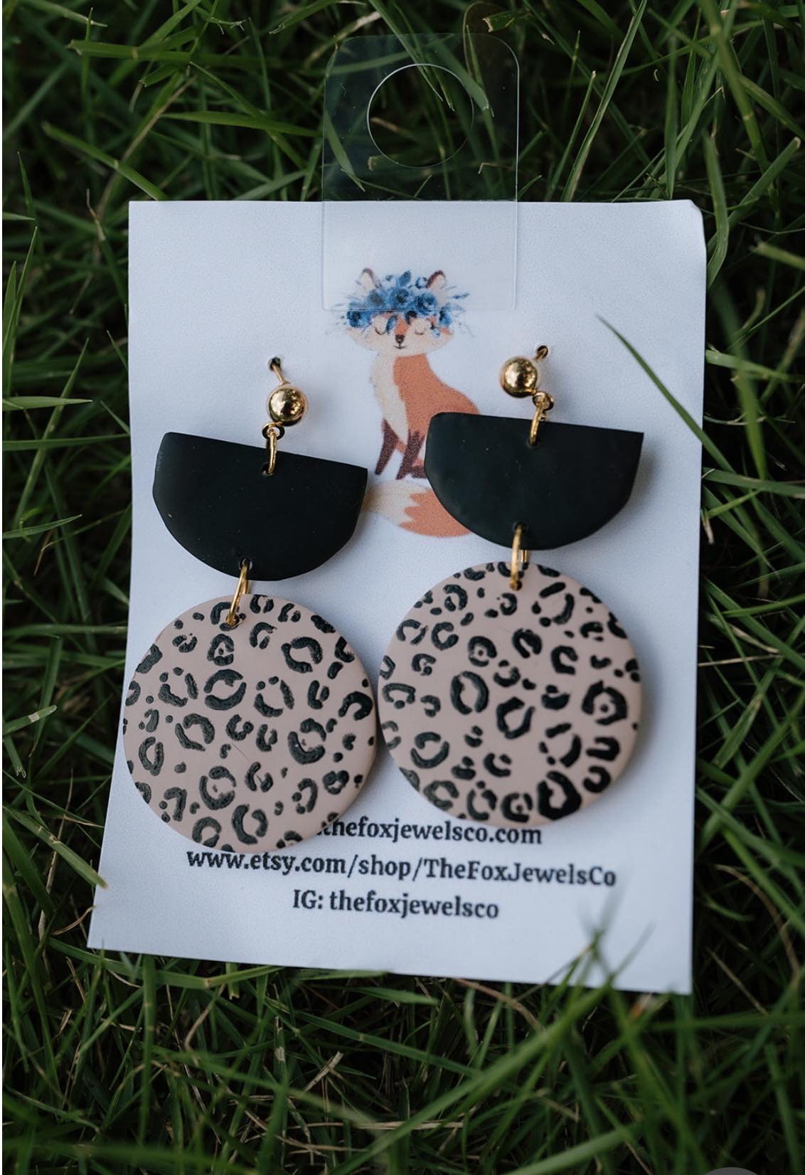 These stylish and cute animal print earrings are perfect for any outfit. Made with polymer clay, they can be dressed up or down for any occasion. Add a fun touch to your look with these versatile earrings. Earrings were made using a silk screen, then individually hand-painted to enhance the color.