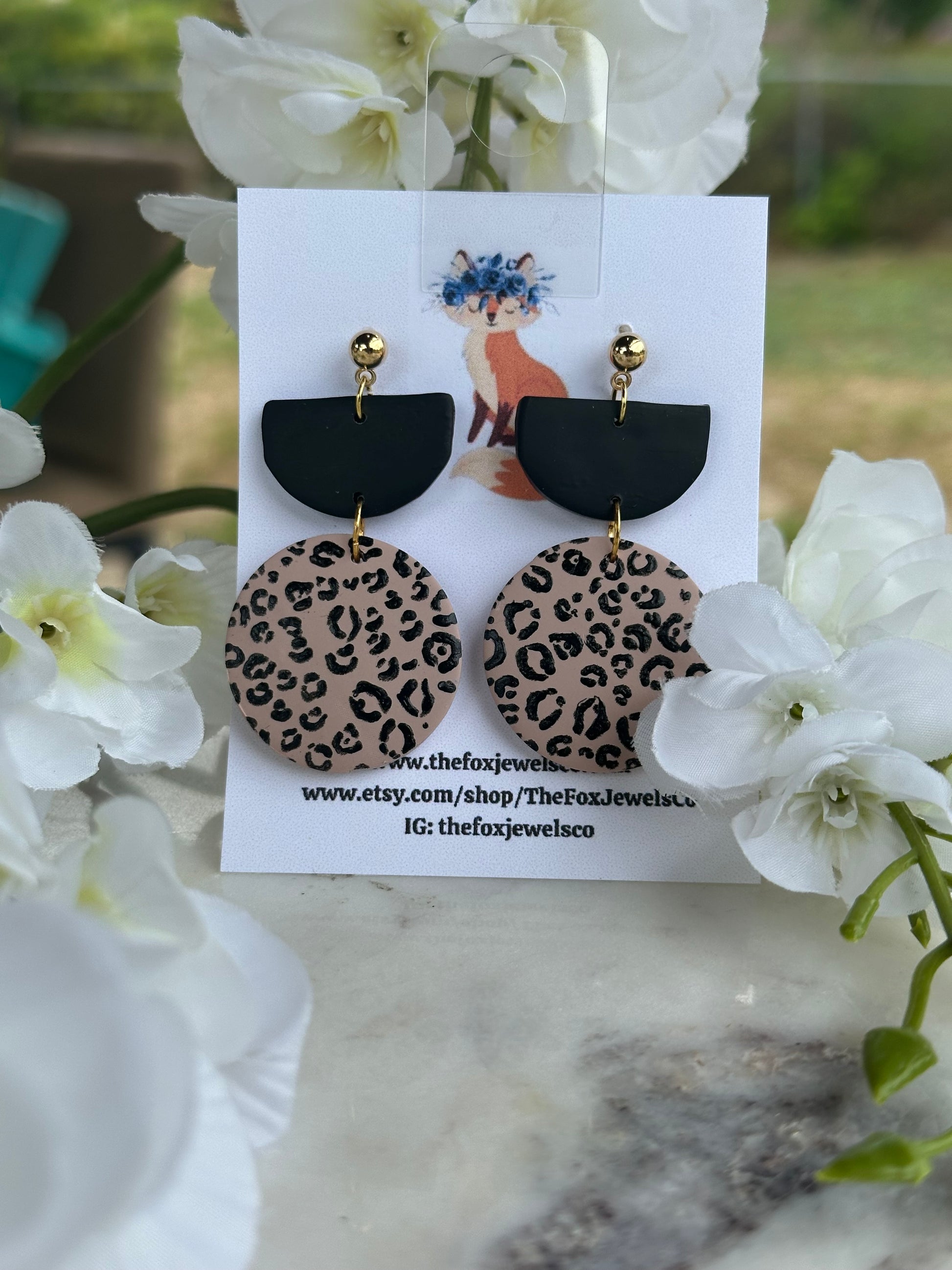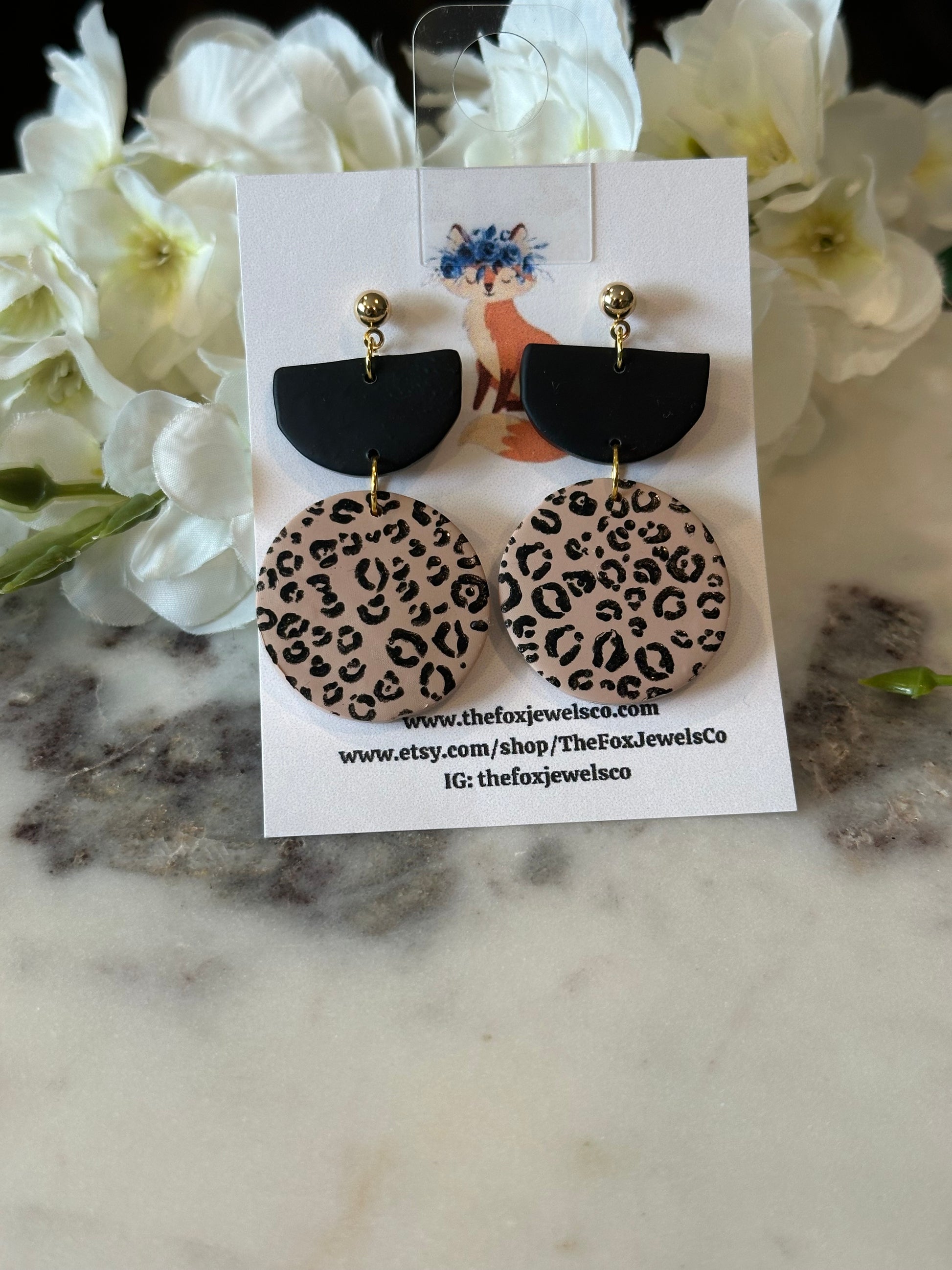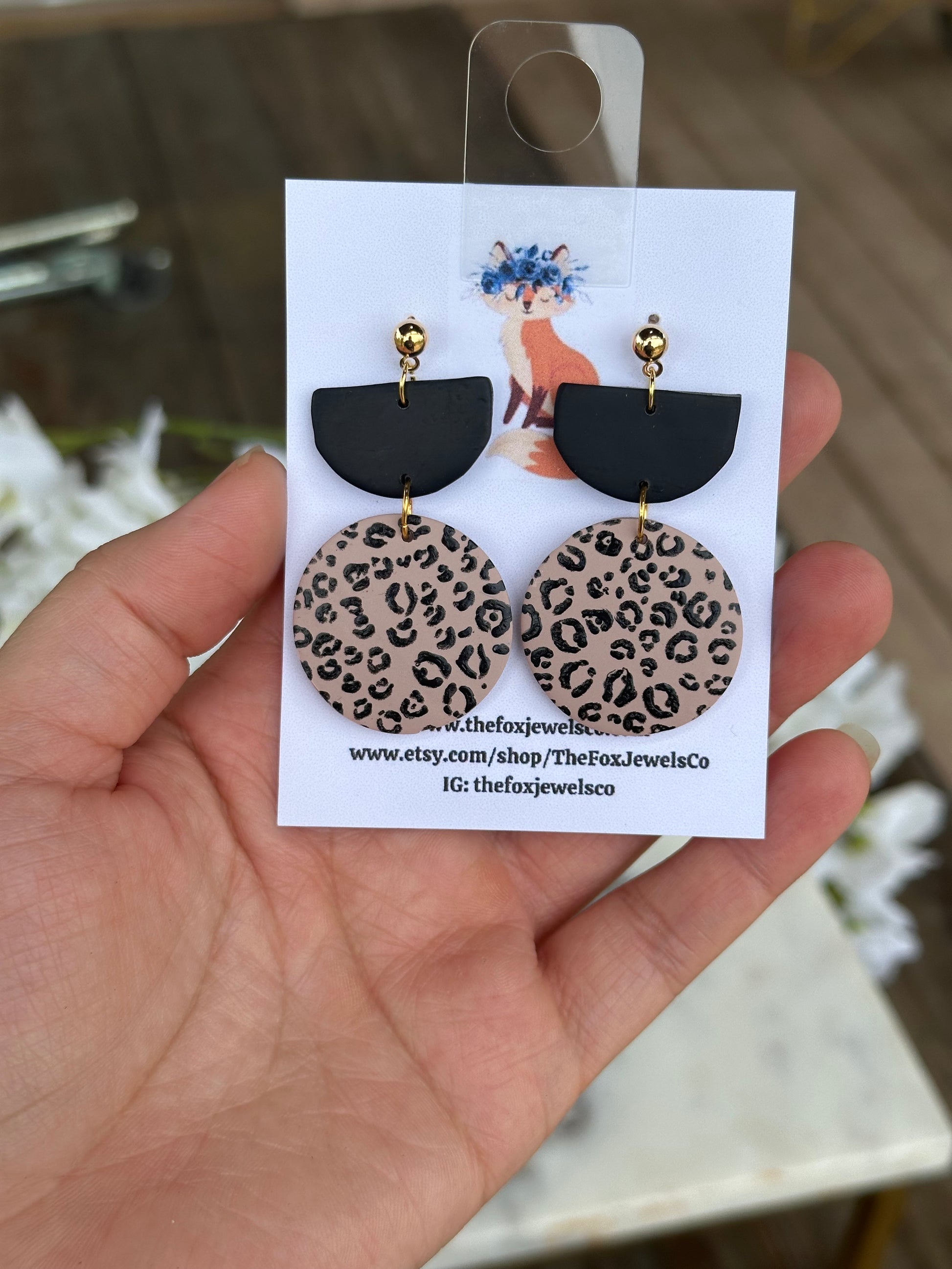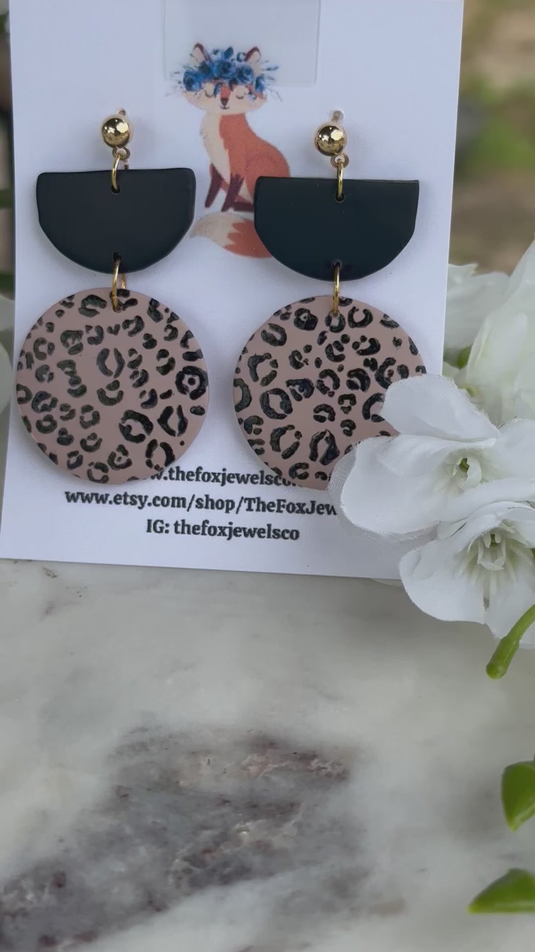 These stylish and cute animal print earrings are perfect for any outfit. Made with polymer clay, they can be dressed up or down for any occasion. Add a fun touch to your look with these versatile earrings. Earrings were made using a silk screen, then individually hand-painted to enhance the color.