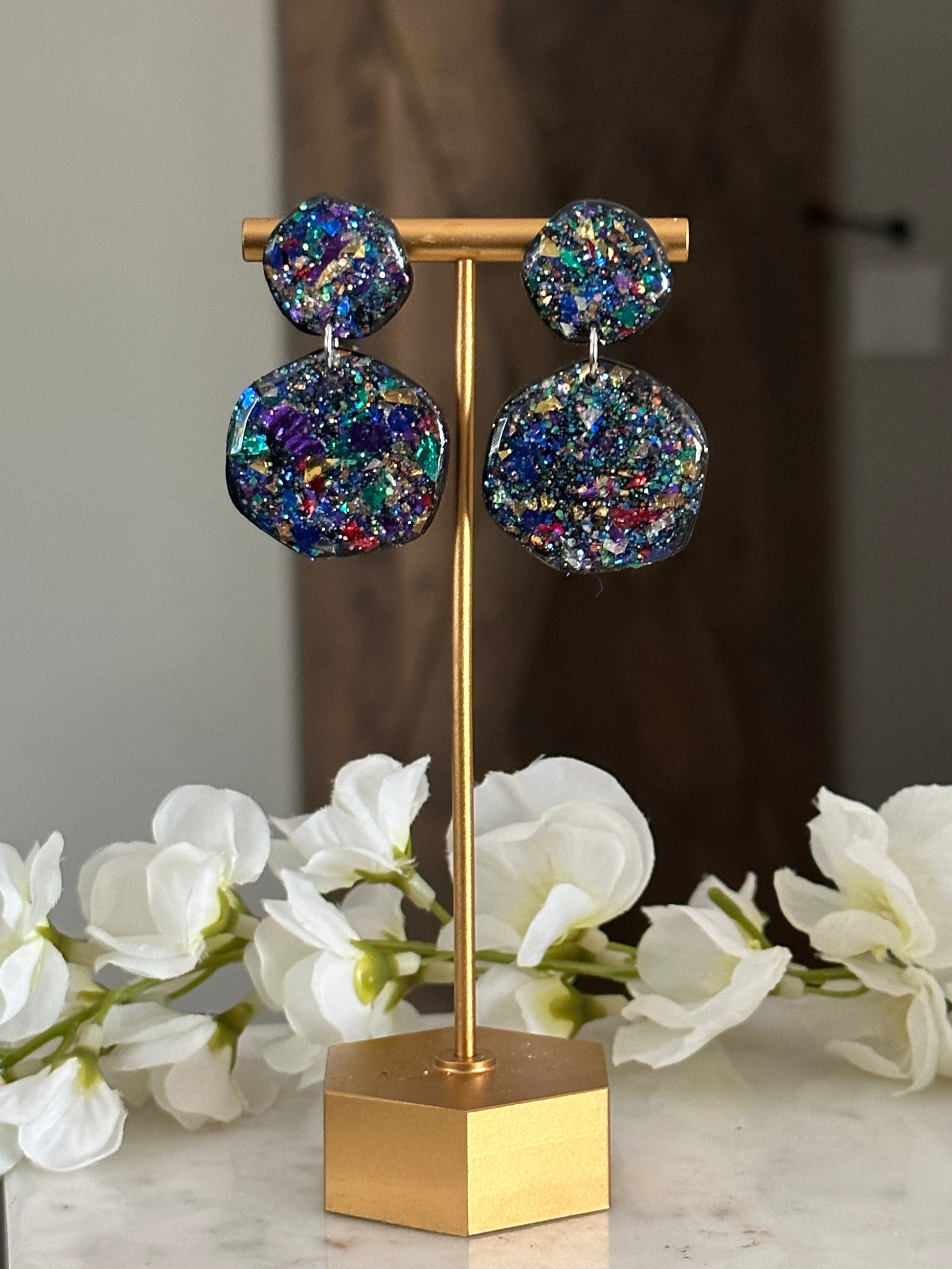 Add a sparkle to your look with these beautiful Bejeweled earrings! Inspired by Taylor Swift's Eras tour, these earrings feature a multicolor glitter mix for a classic look that is sure to turn heads.