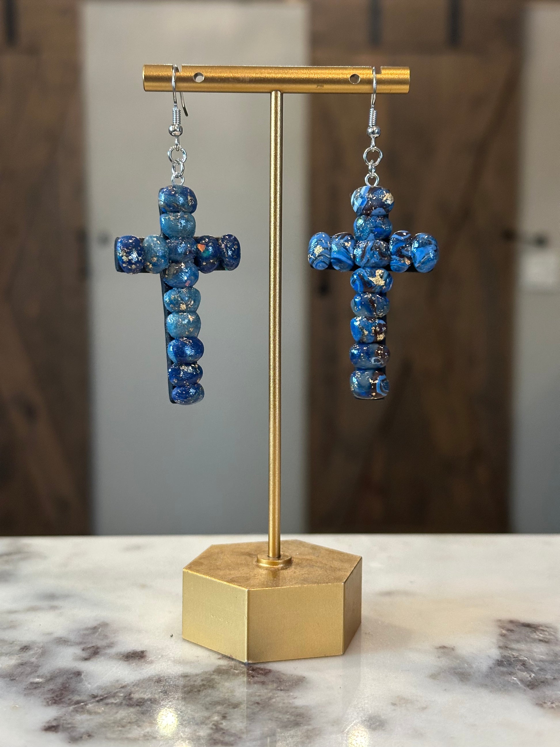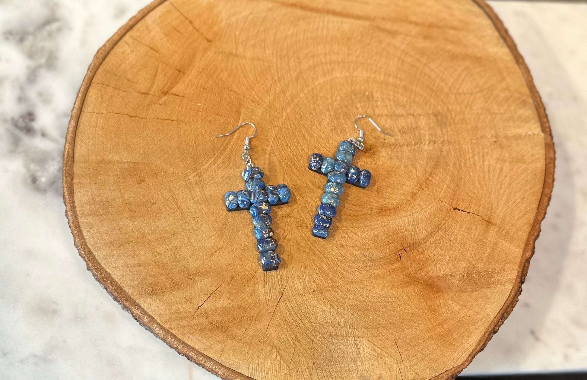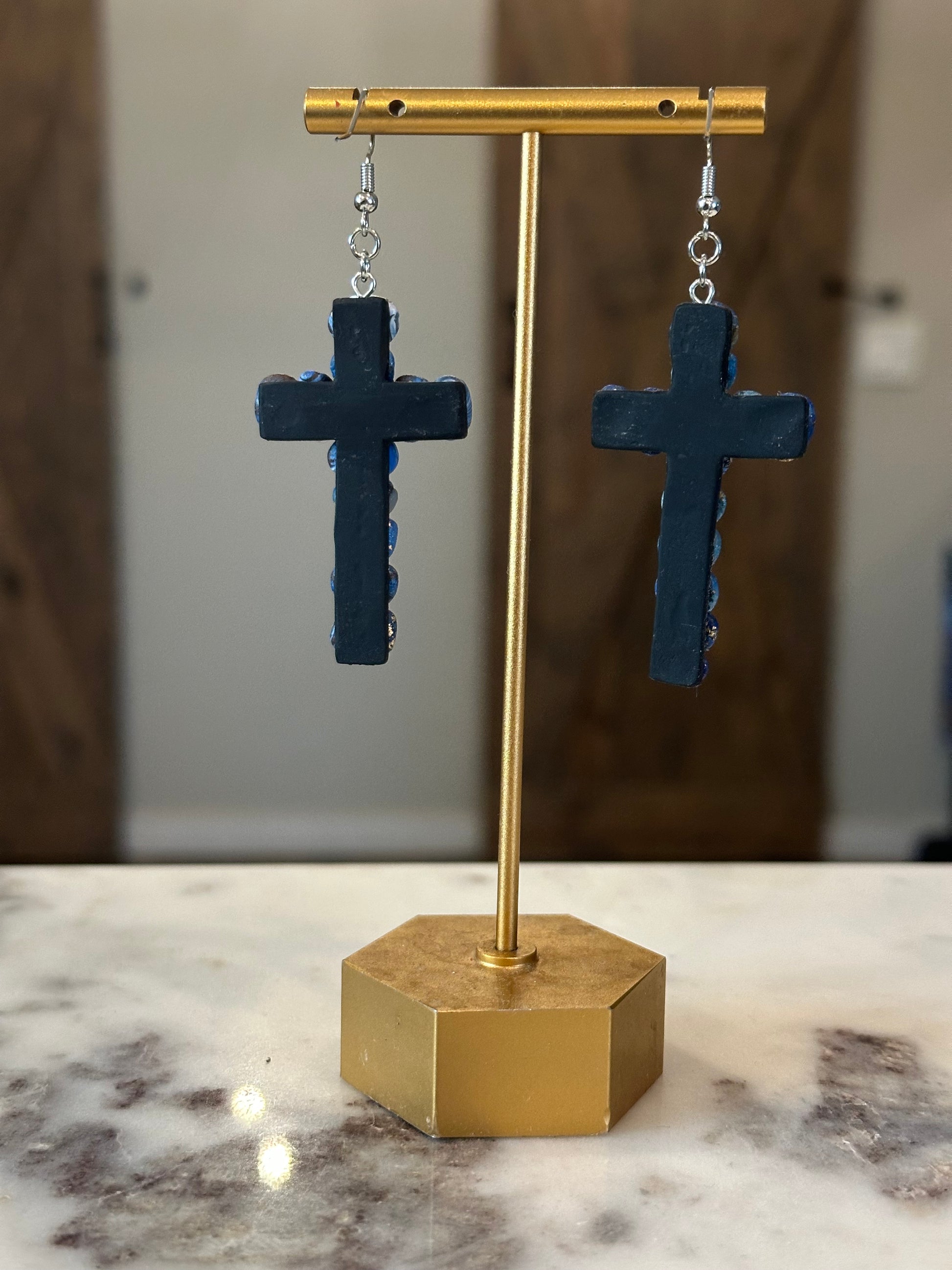 Discover the perfect blend of style and faith with our handmade Faux Stone Cross Earrings. The oversized, western design adds a unique touch to any outfit, while the faux stone and cross elements provide a symbol of faith and spirituality. Elevate your look with these stunning Christian earrings.