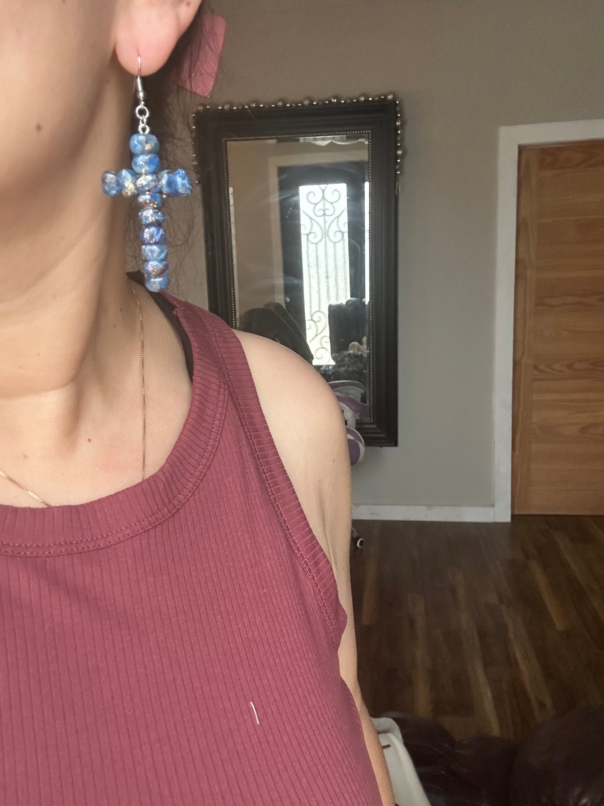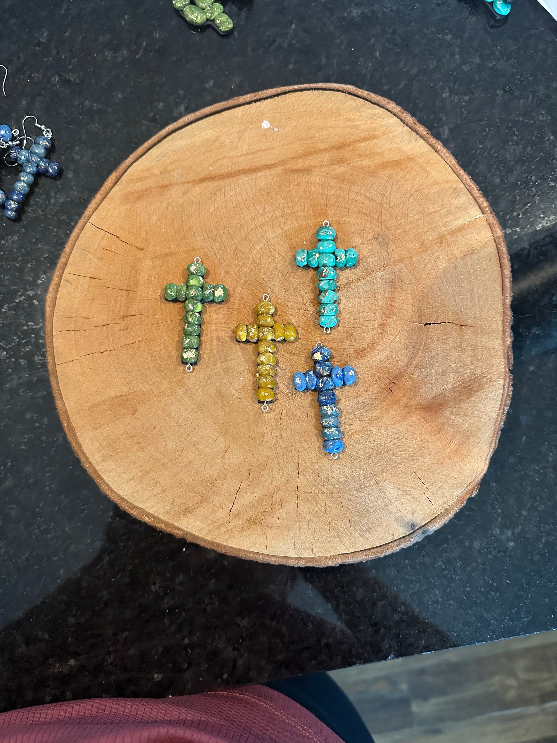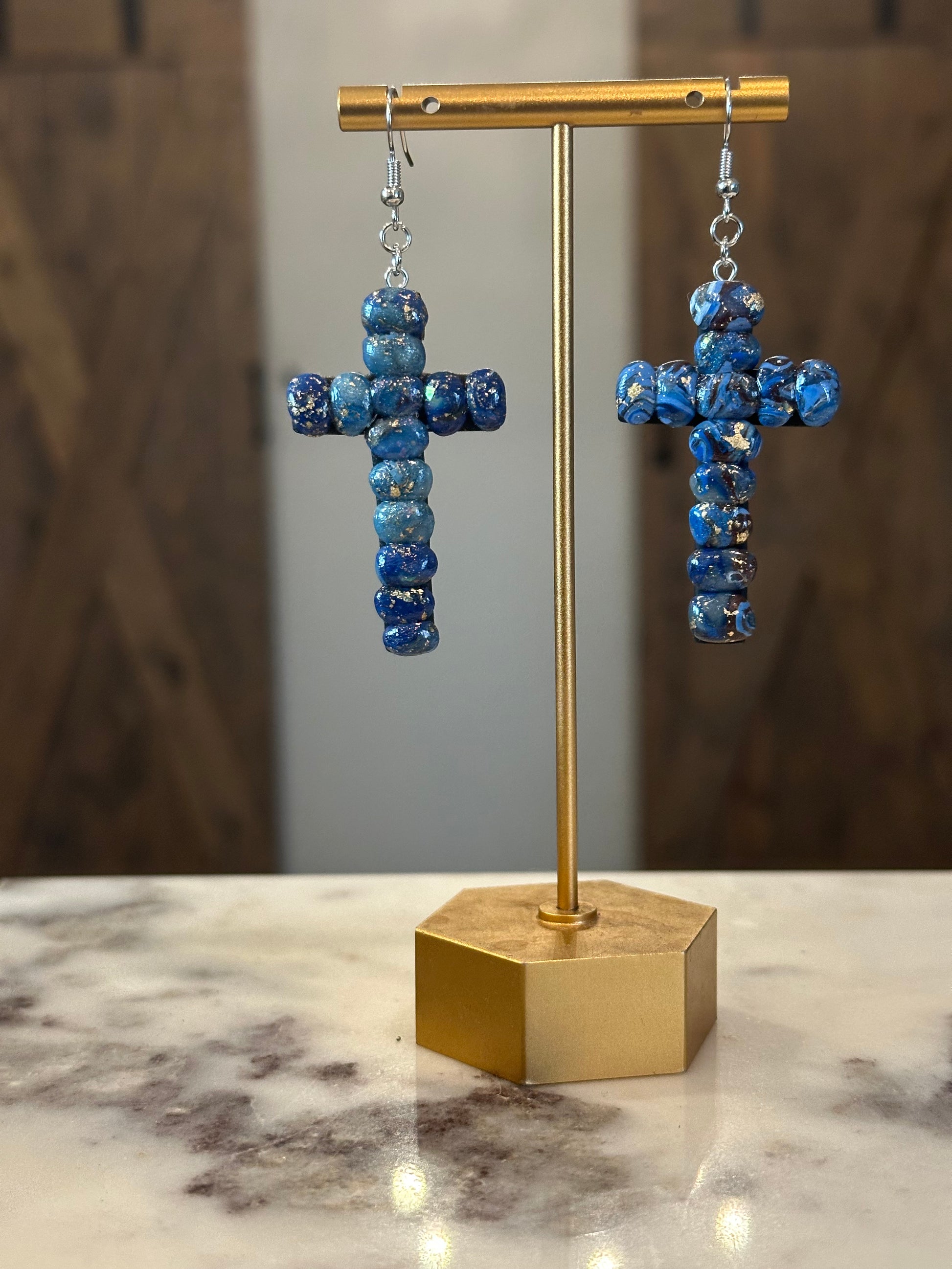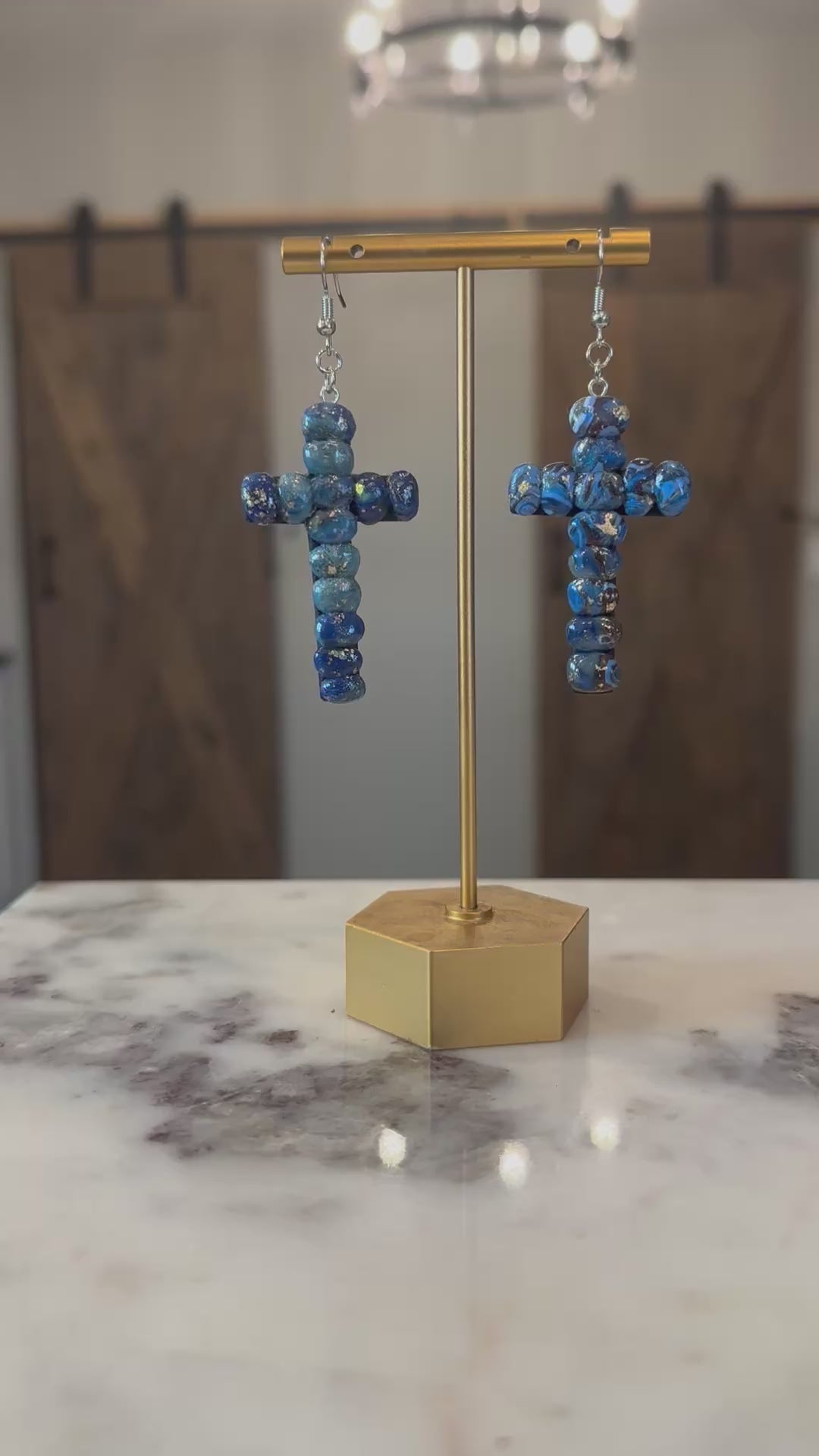 Discover the perfect blend of style and faith with our handmade Faux Stone Cross Earrings. The oversized, western design adds a unique touch to any outfit, while the faux stone and cross elements provide a symbol of faith and spirituality. Elevate your look with these stunning Christian earrings.
