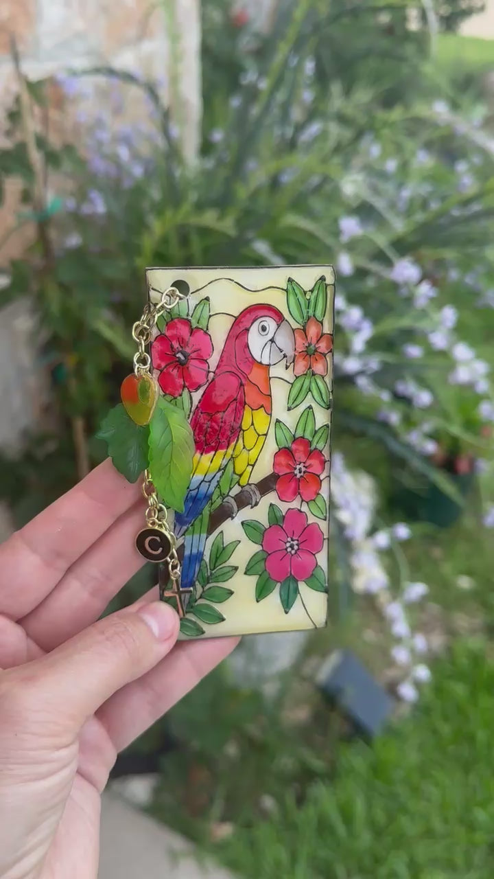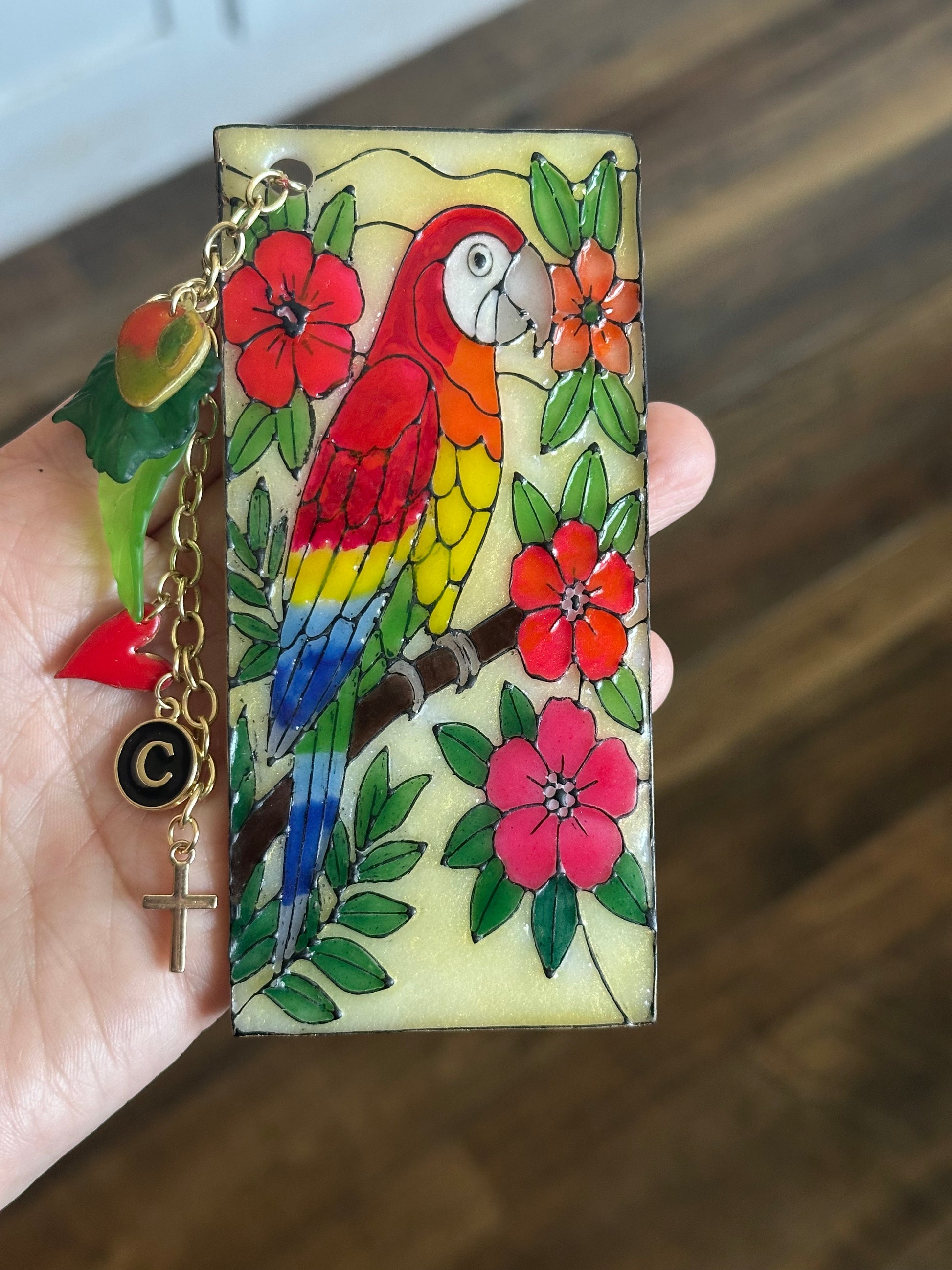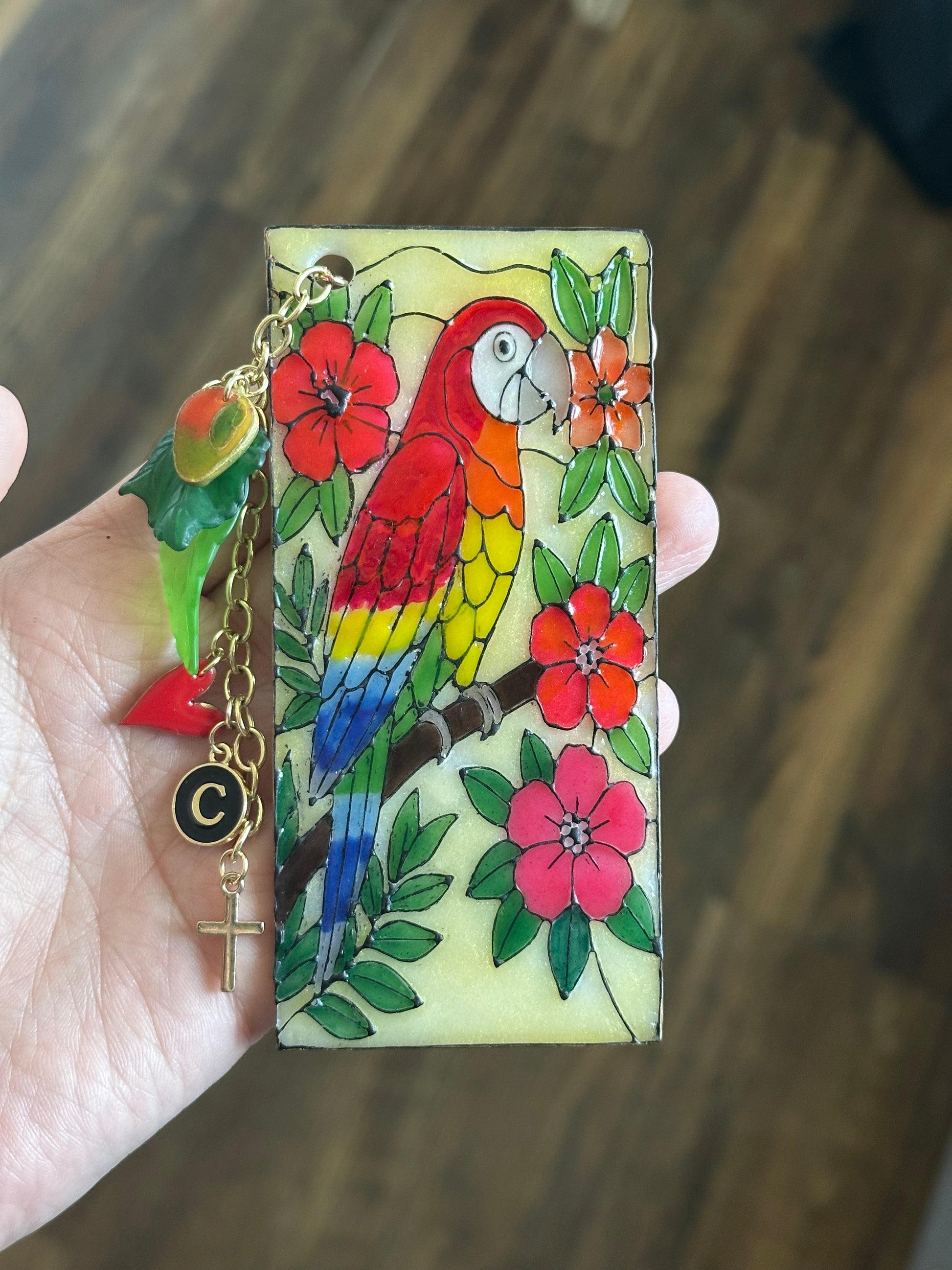 Parrot Stained Glass Bookmark – Handmade Polymer Clay & Resin – Tropical Bird Lover Gift
