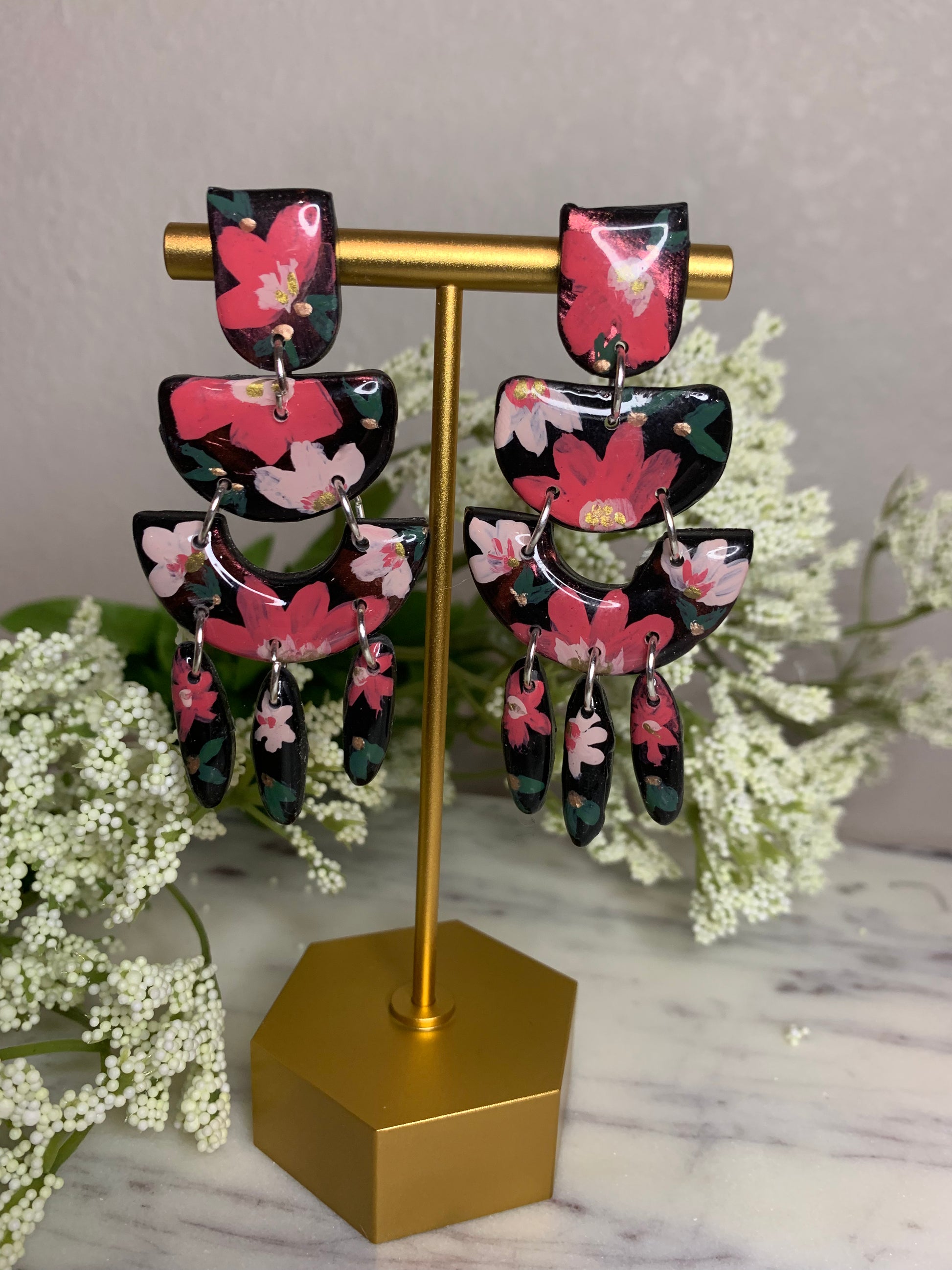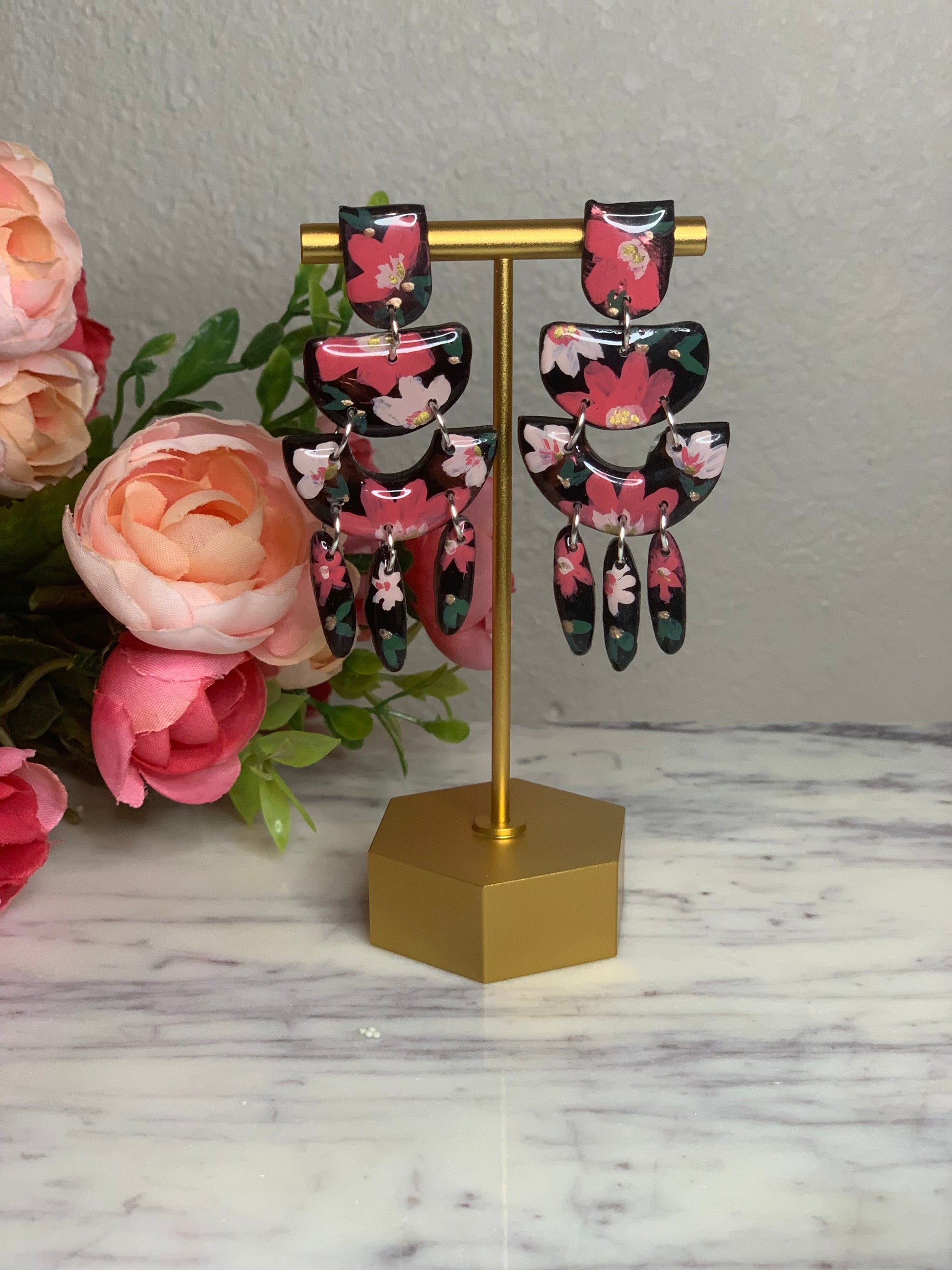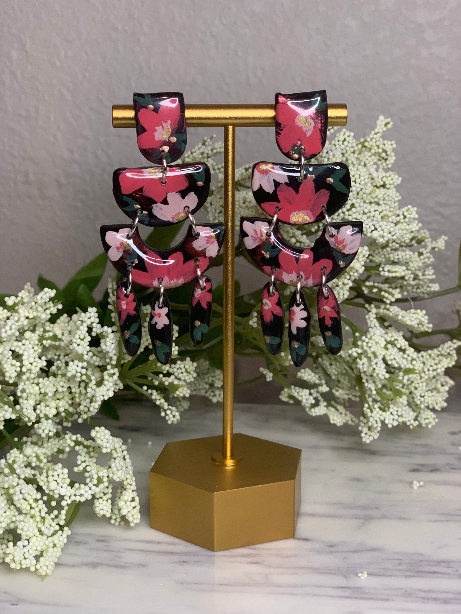 All earrings in this collection are hand painted with acrylic paints and sealed with resin to protect the art. Items from this collection will be painted specifically for you and will typically take 3-5 business days to complete. In some cases and depending on the style, we may have some earrings ready to be shipped upon placing your order. I will personally reach out to you and keep you updated on the process and your order. All earring styles are lightweight and will not cause your ears any stress.