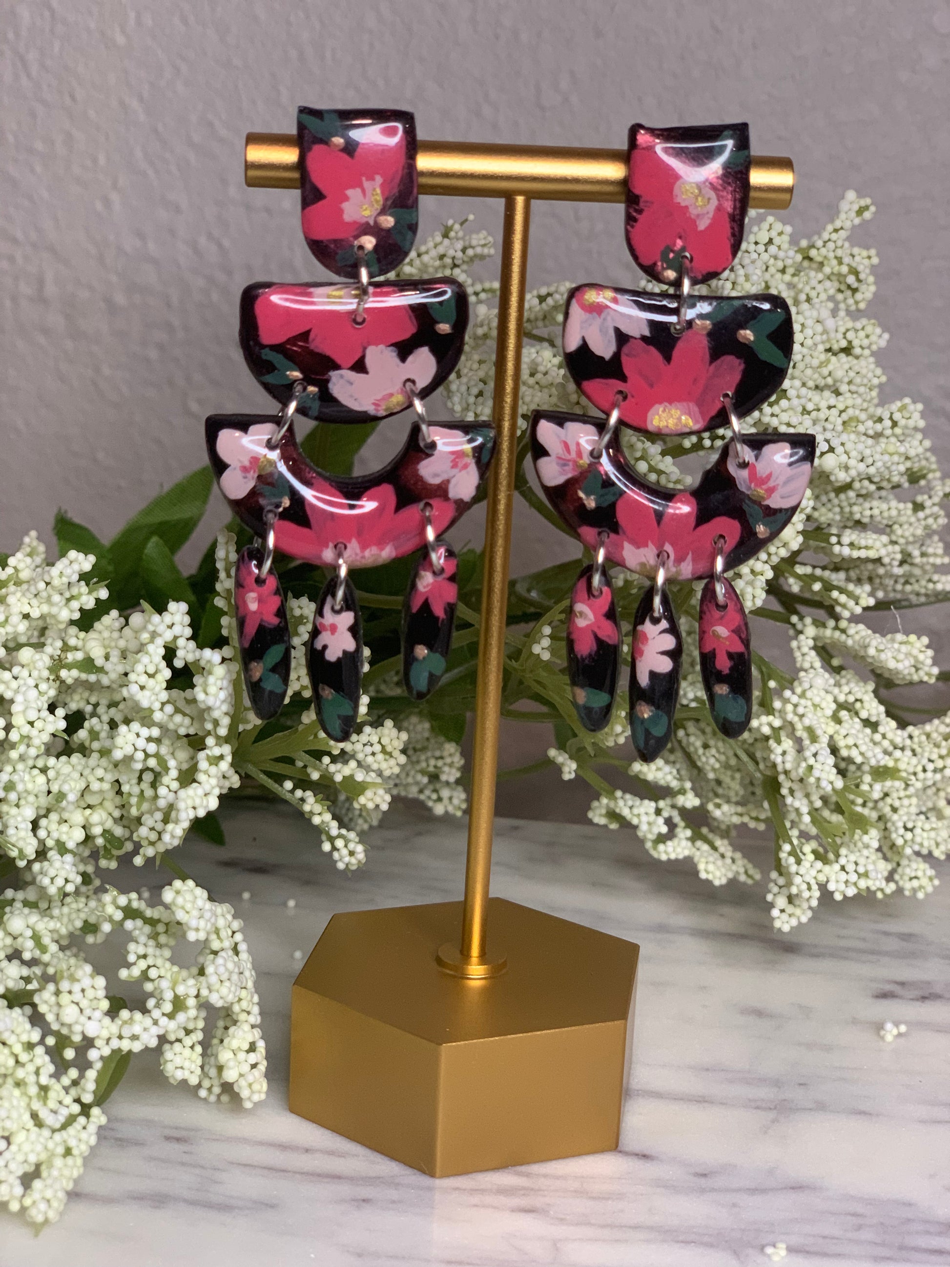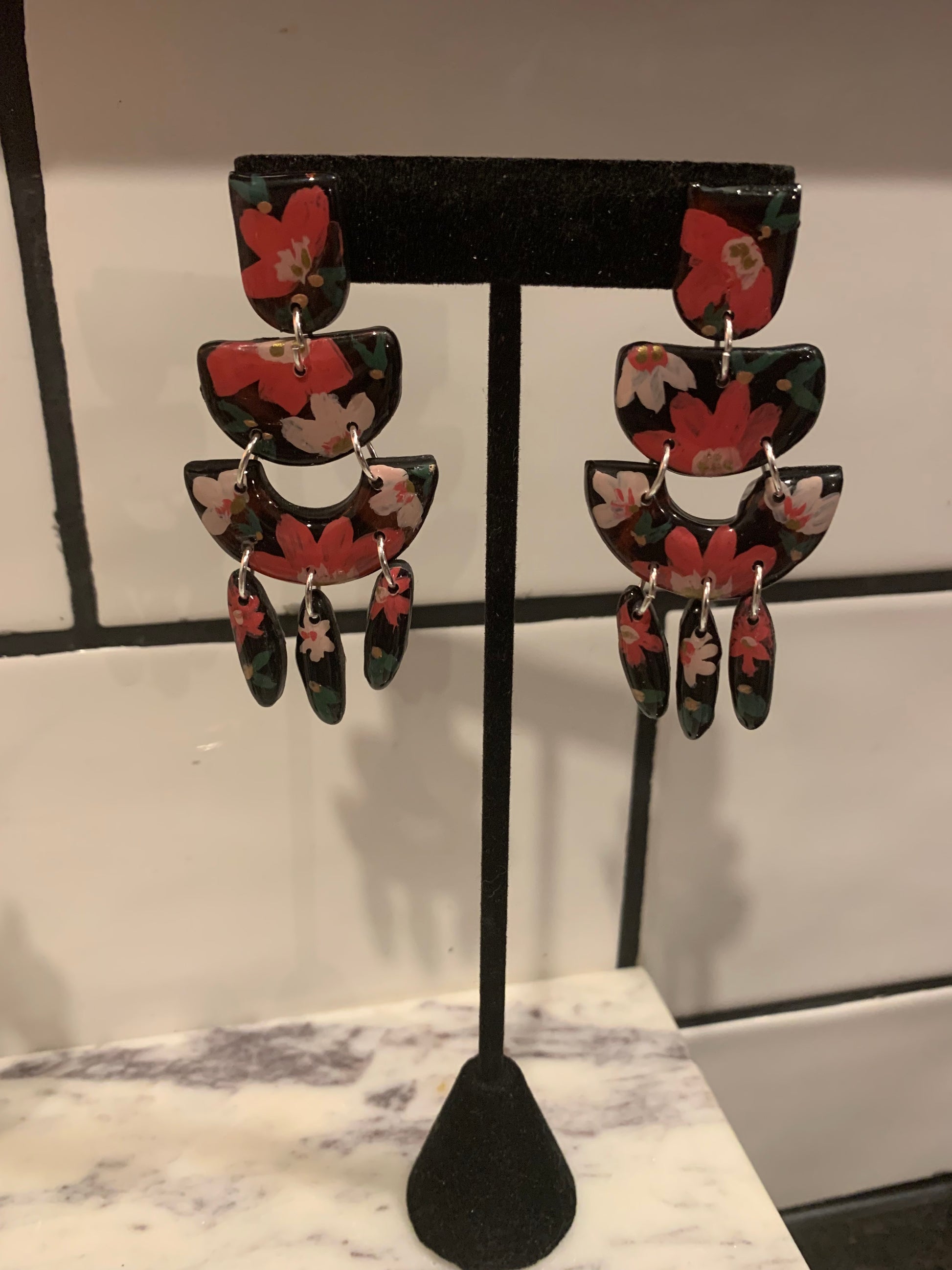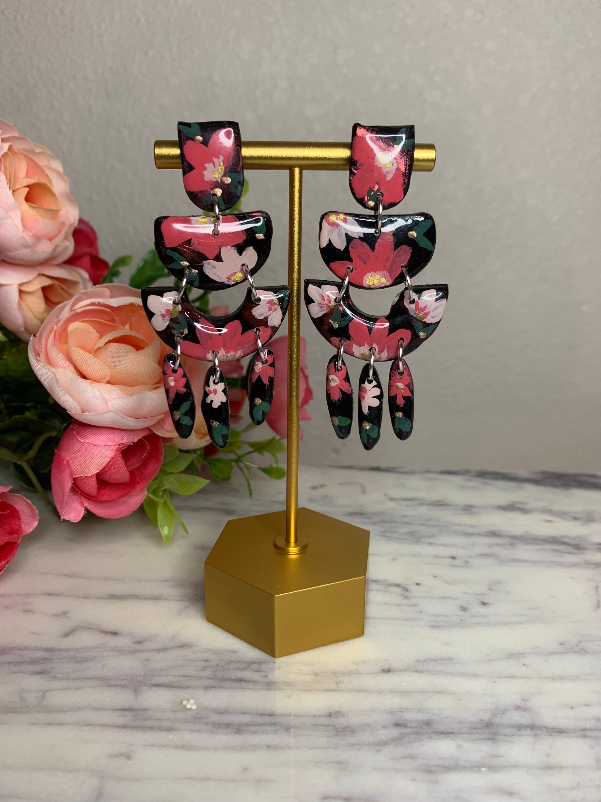 All earrings in this collection are hand painted with acrylic paints and sealed with resin to protect the art. Items from this collection will be painted specifically for you and will typically take 3-5 business days to complete. In some cases and depending on the style, we may have some earrings ready to be shipped upon placing your order. I will personally reach out to you and keep you updated on the process and your order. All earring styles are lightweight and will not cause your ears any stress.