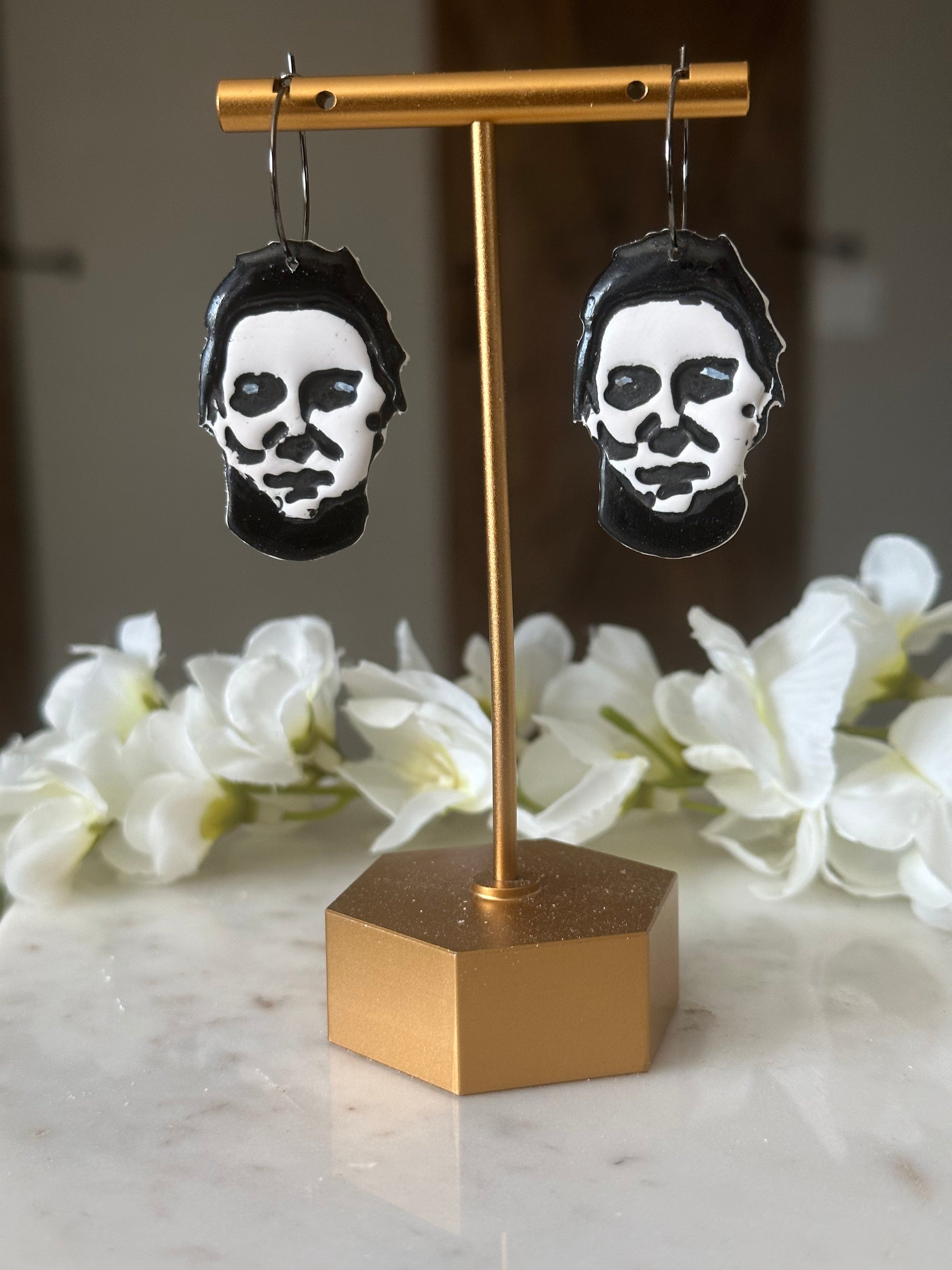 These Michael Myers earrings are the perfect way to show your love for classic Halloween horror movies. Hand painted for a realistic look, these killer statement earrings will make your favorite horror series come to life.