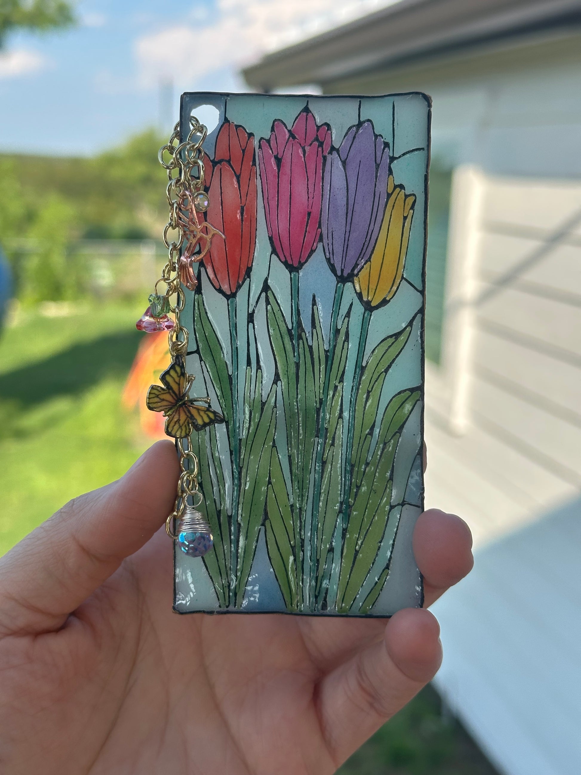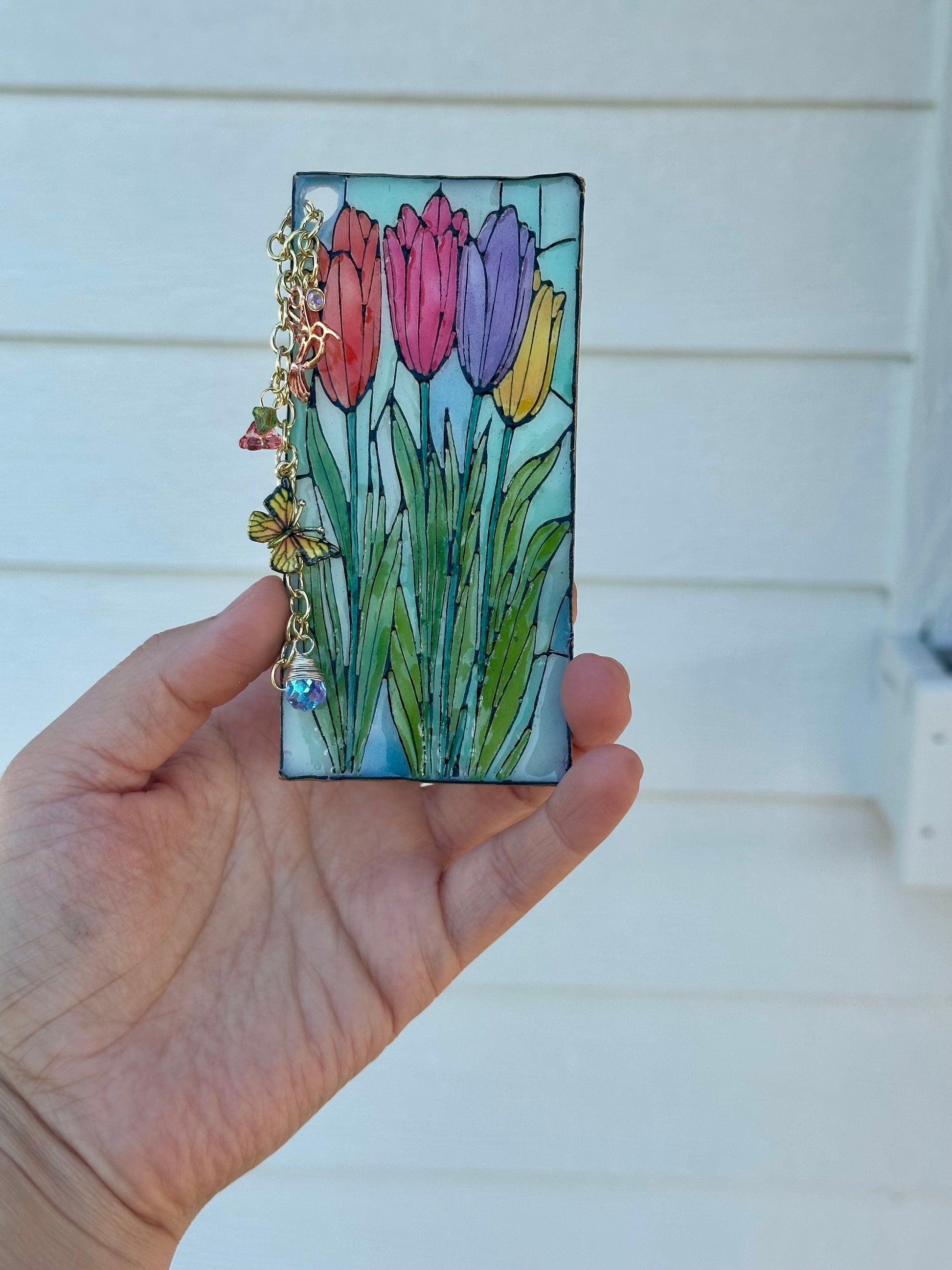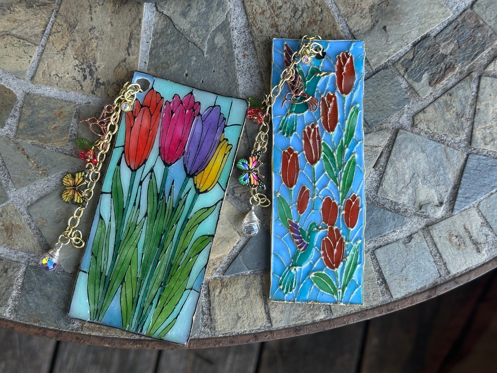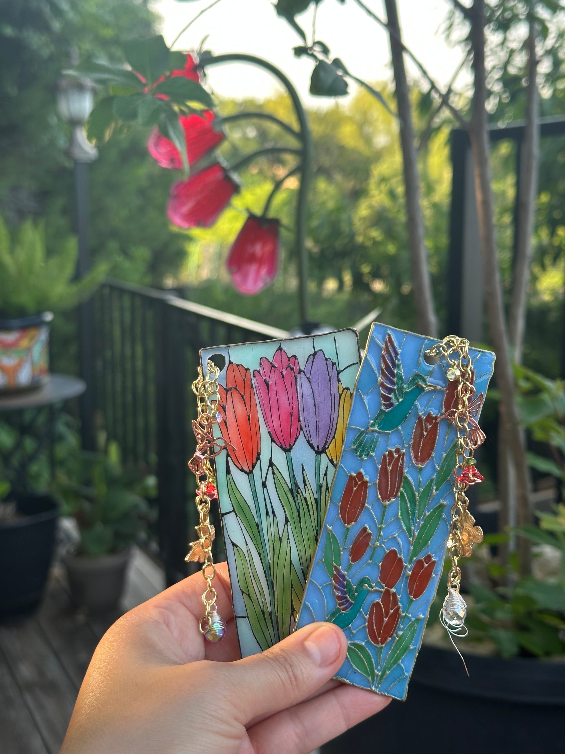 🌷 Tulip Stained Glass Bookmark – Choose Multi-Tulips or Hummingbird Design