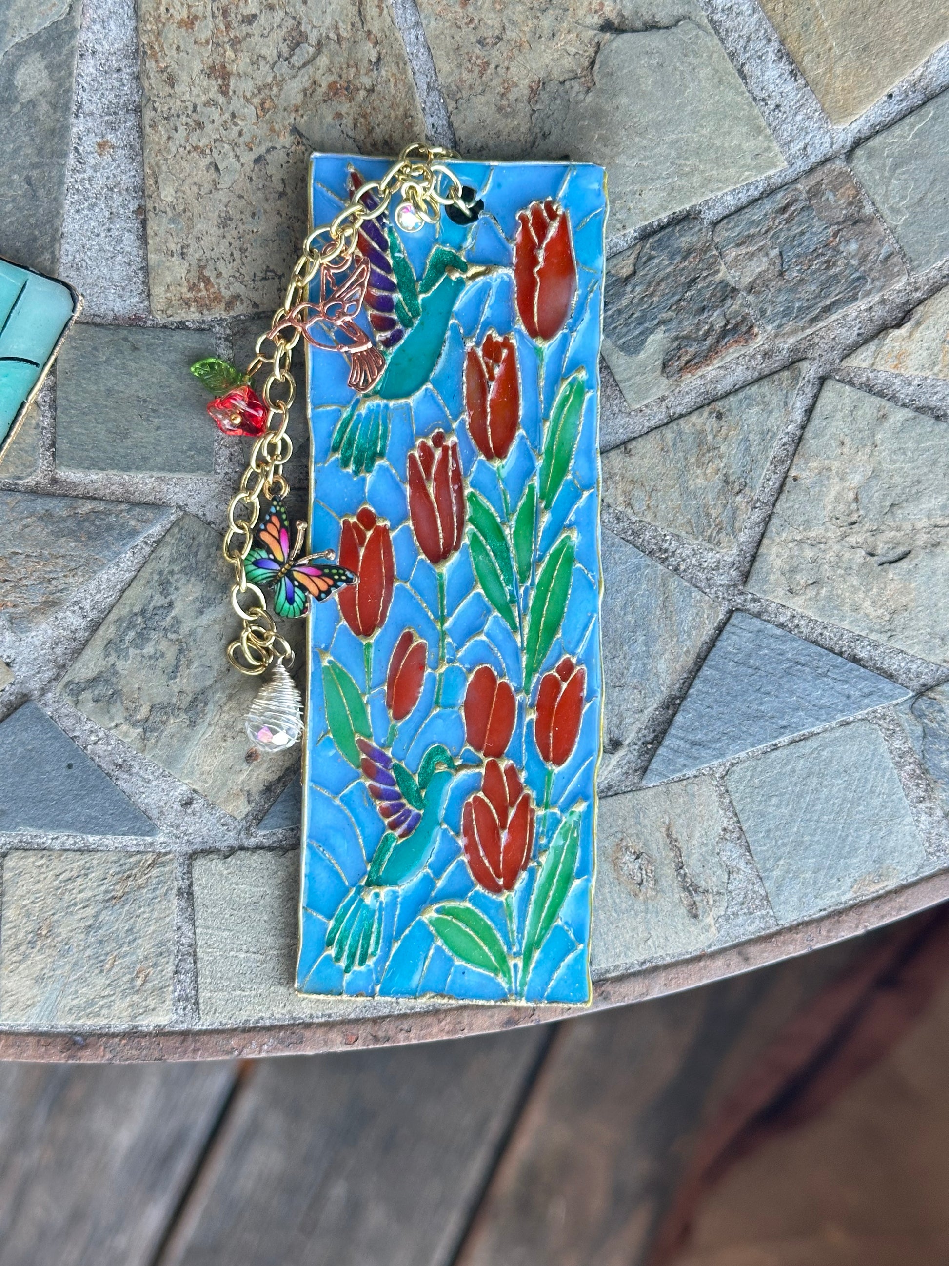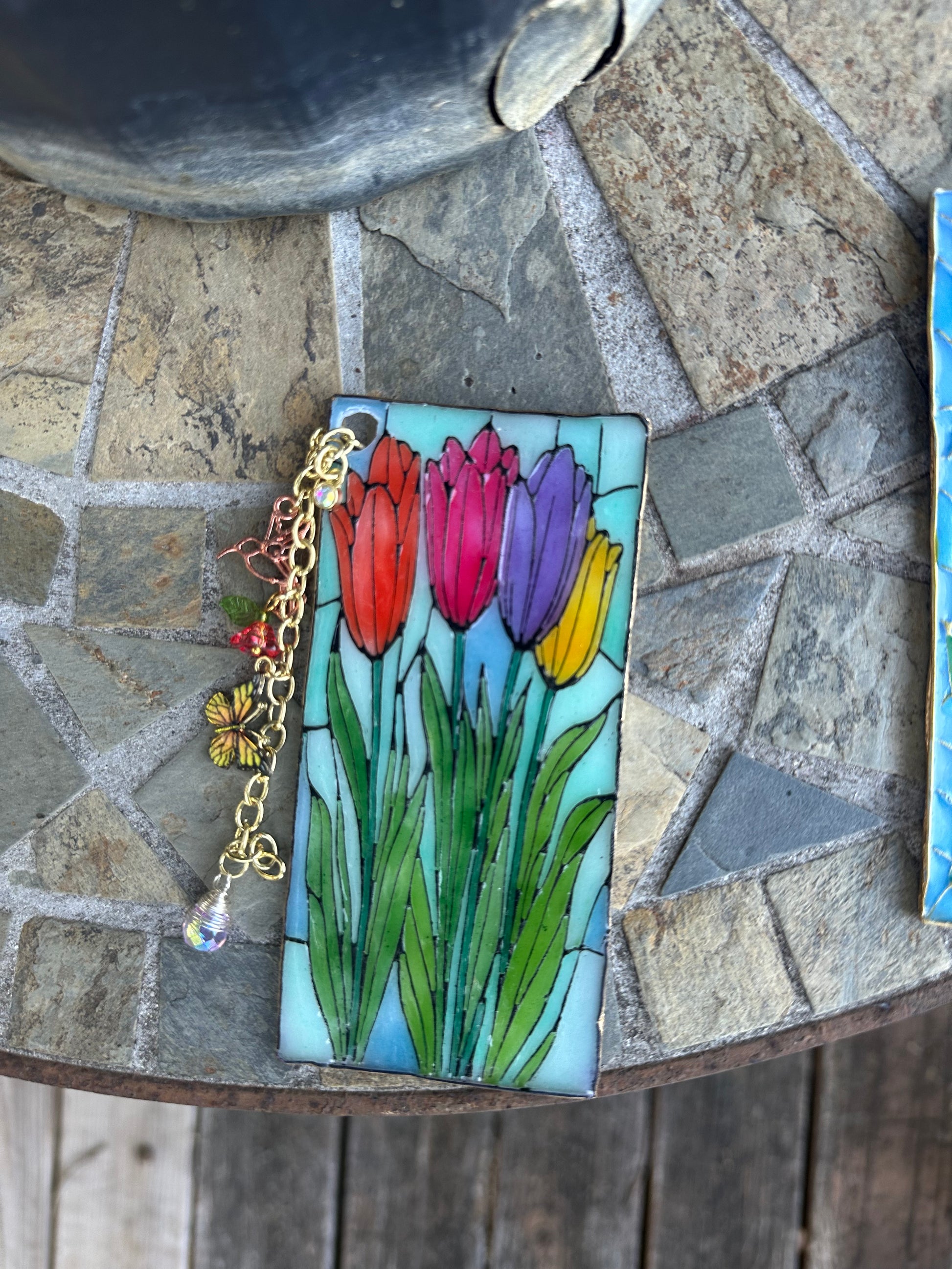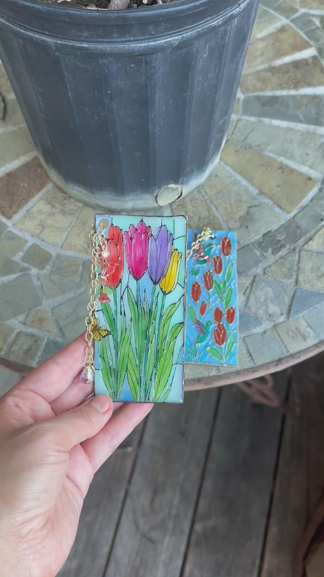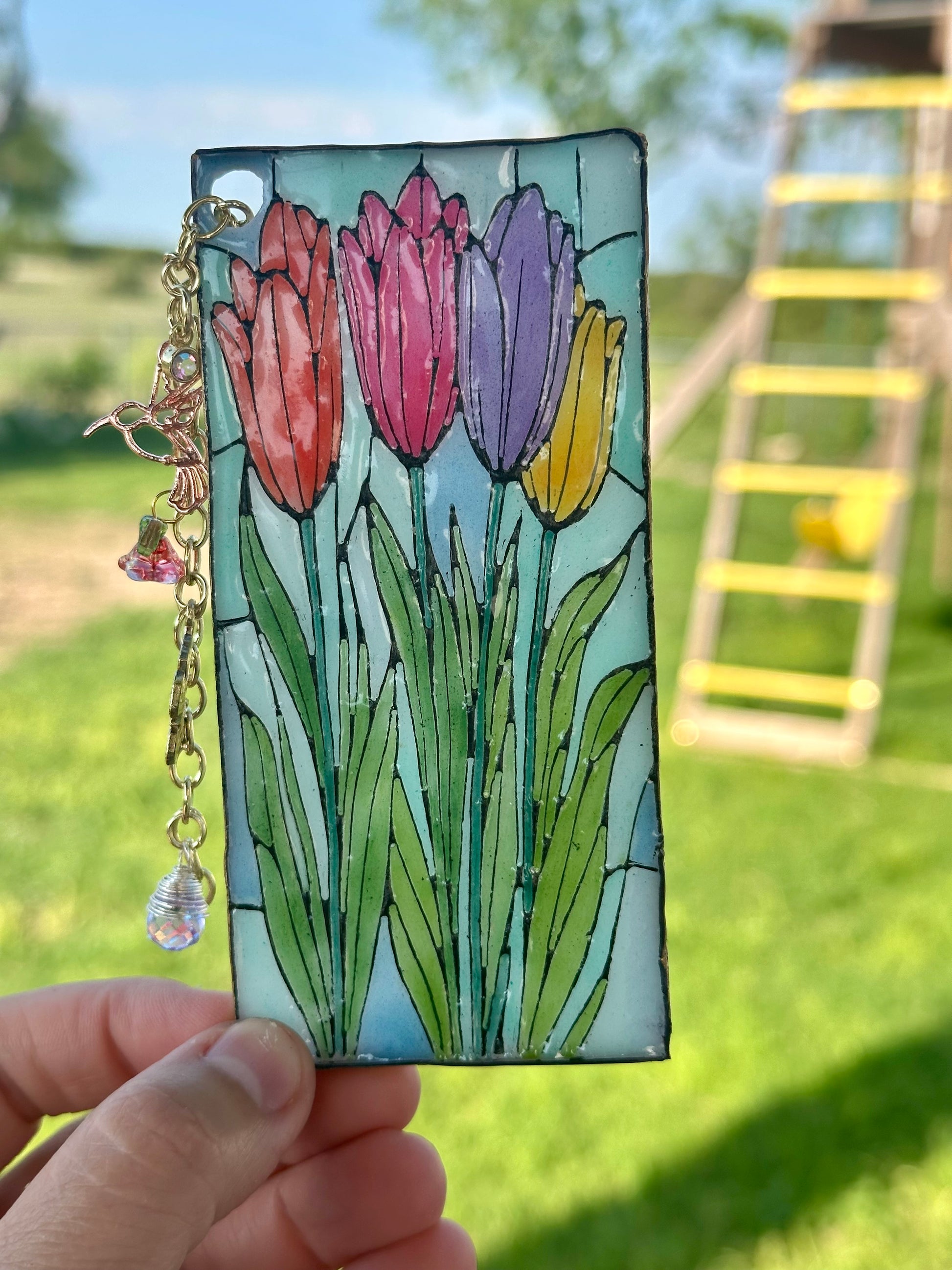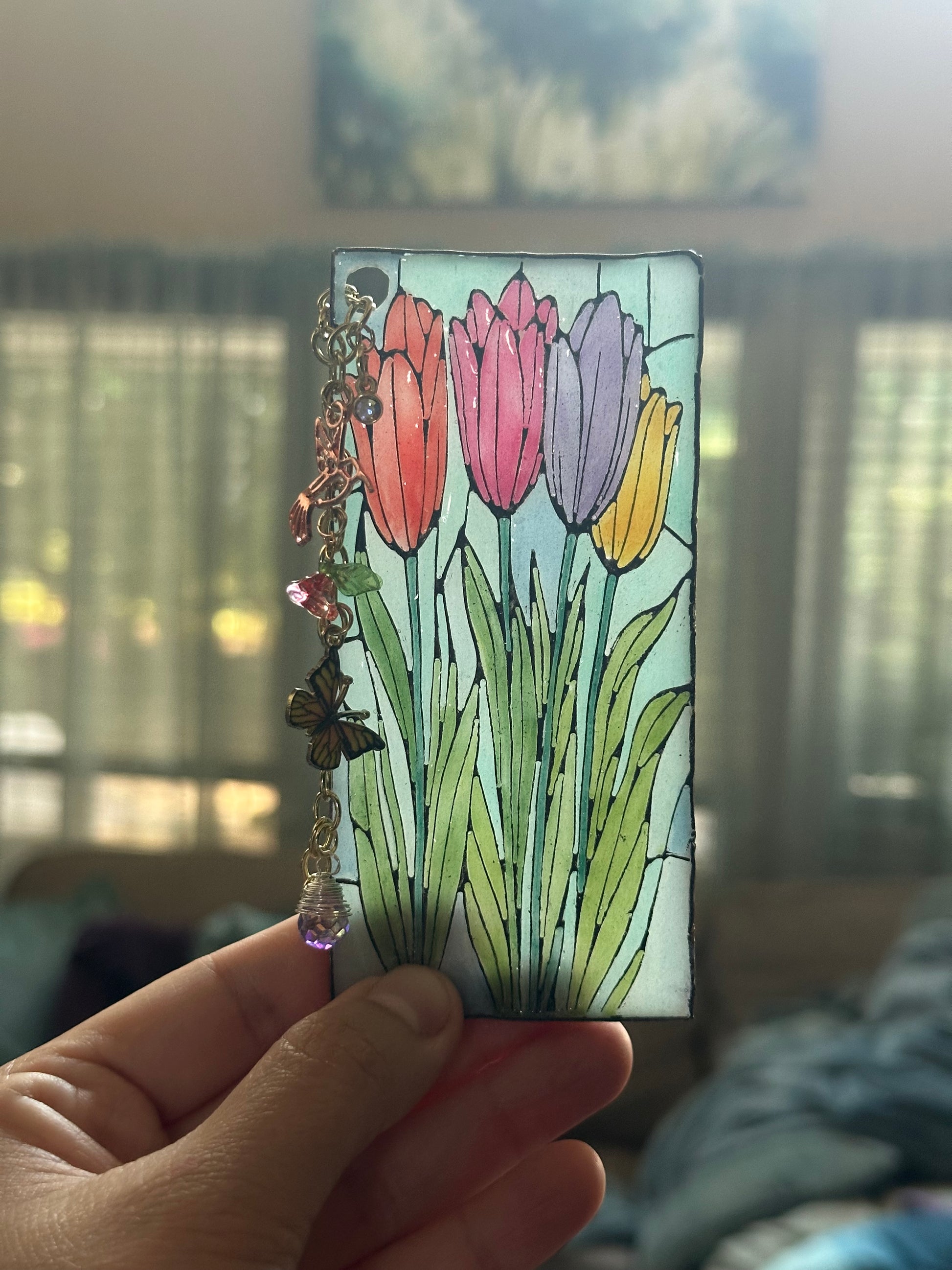 🌷 Tulip Stained Glass Bookmark – Choose Multi-Tulips or Hummingbird Design