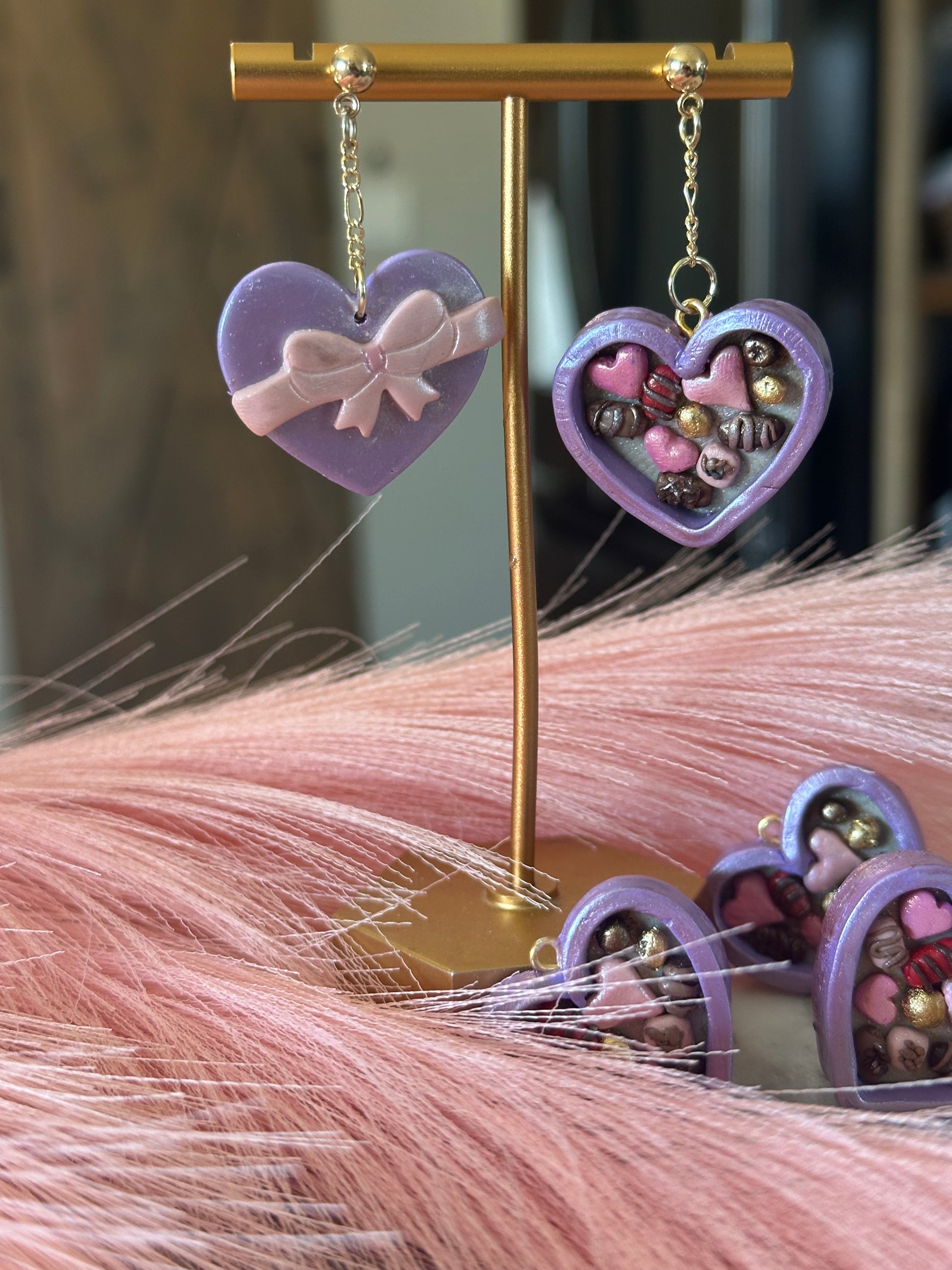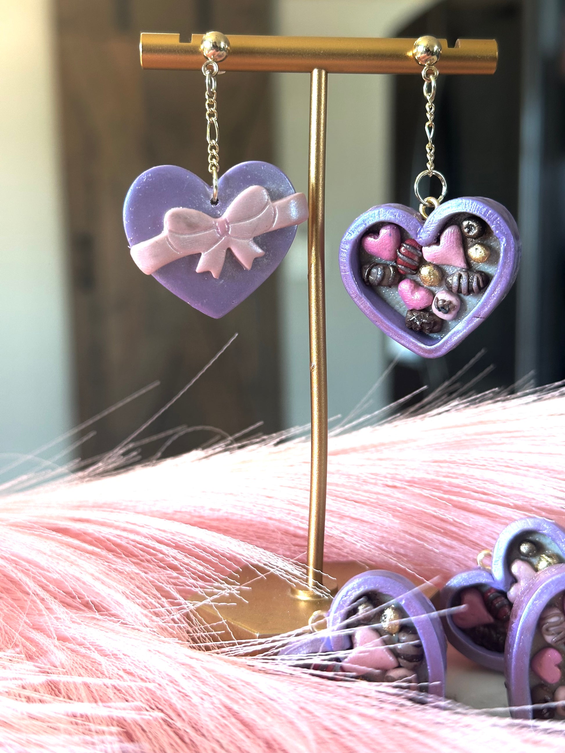 Indulge in the perfect gift for your Valentine's Day sweetheart with our heart-shaped box of clay chocolates earrings. These novelty earrings are both cute and memorable, making them the perfect pair for any outfit. Show your love with this fun and unique accessory, perfect for any occasion.