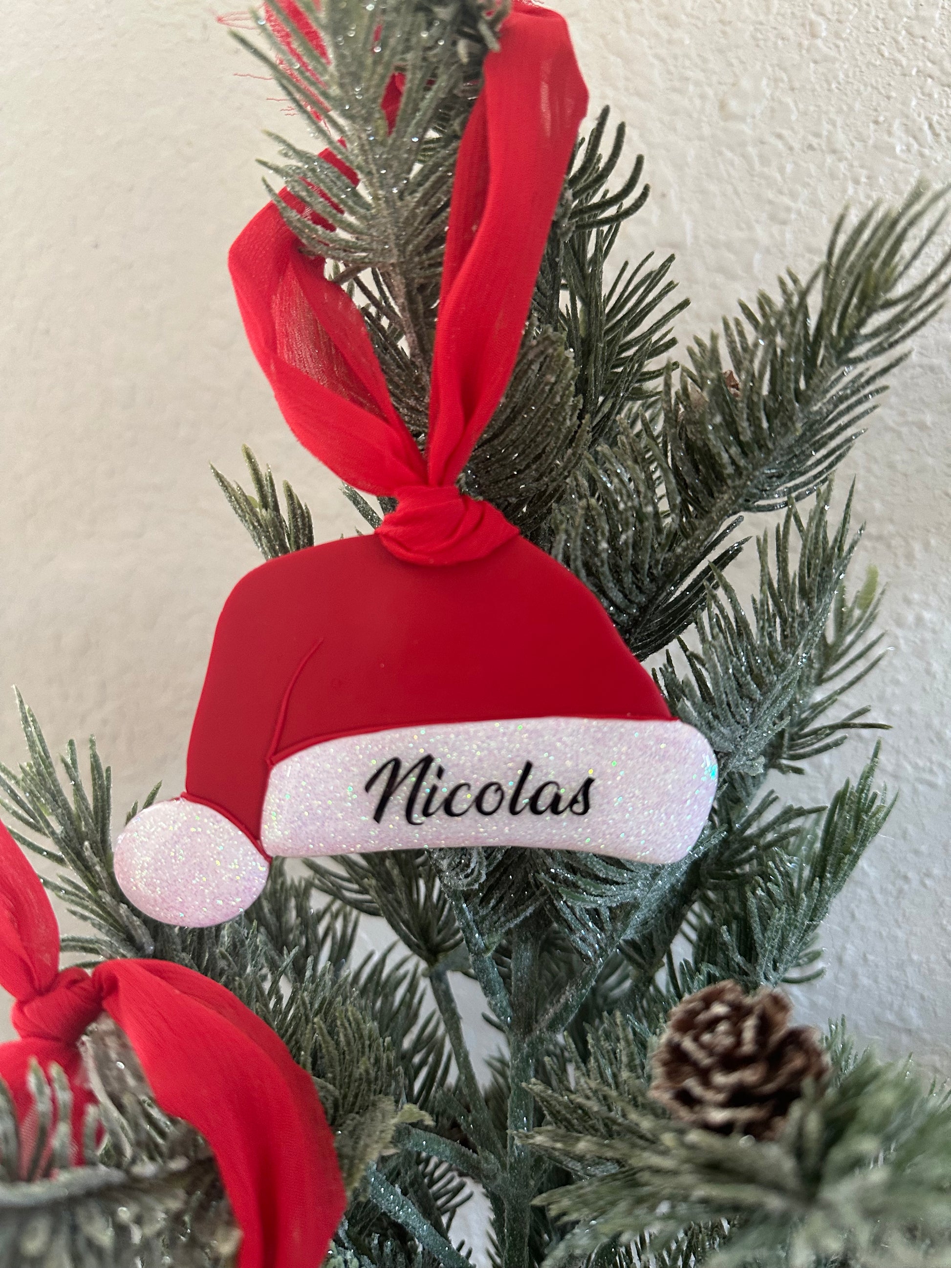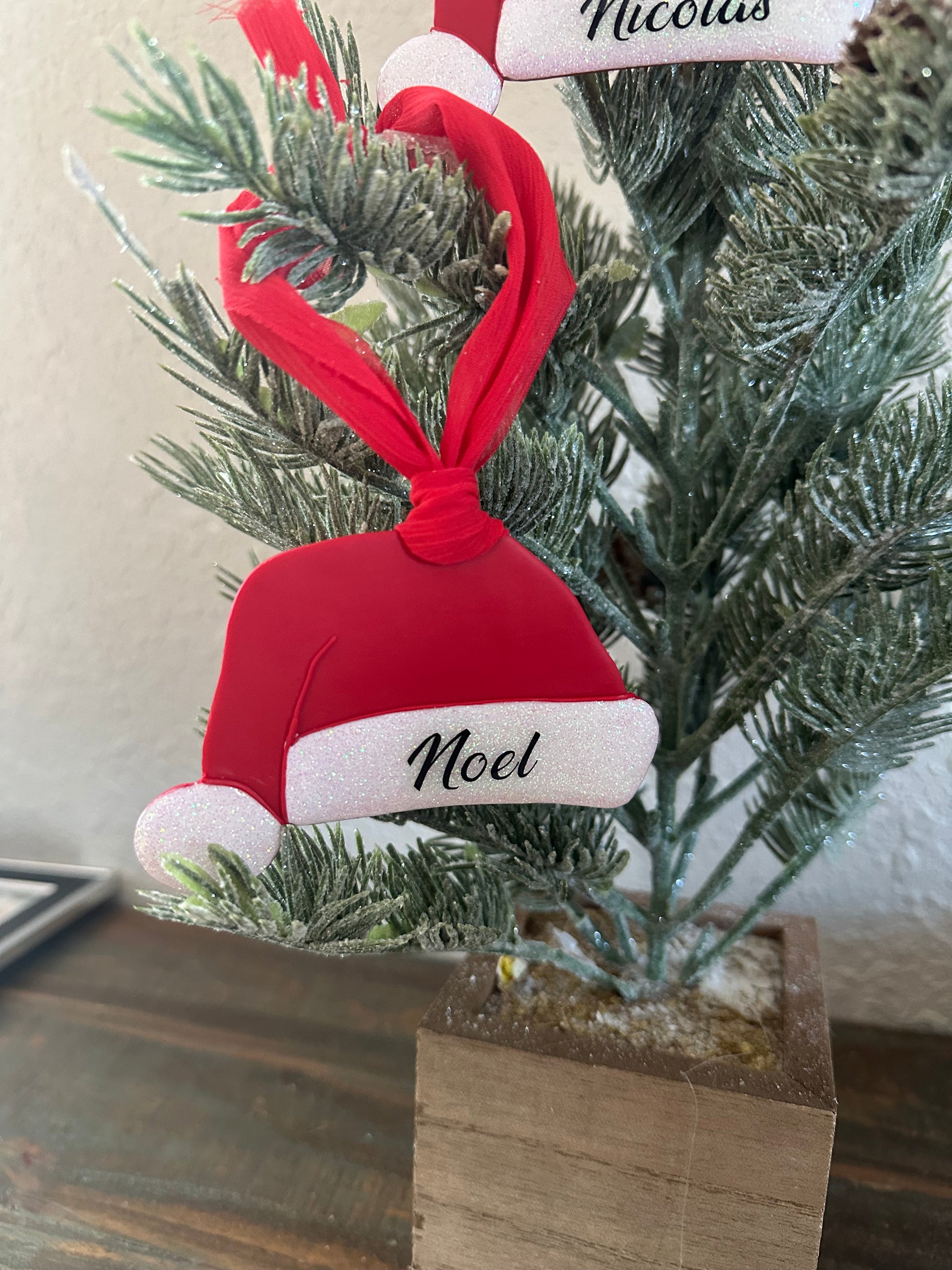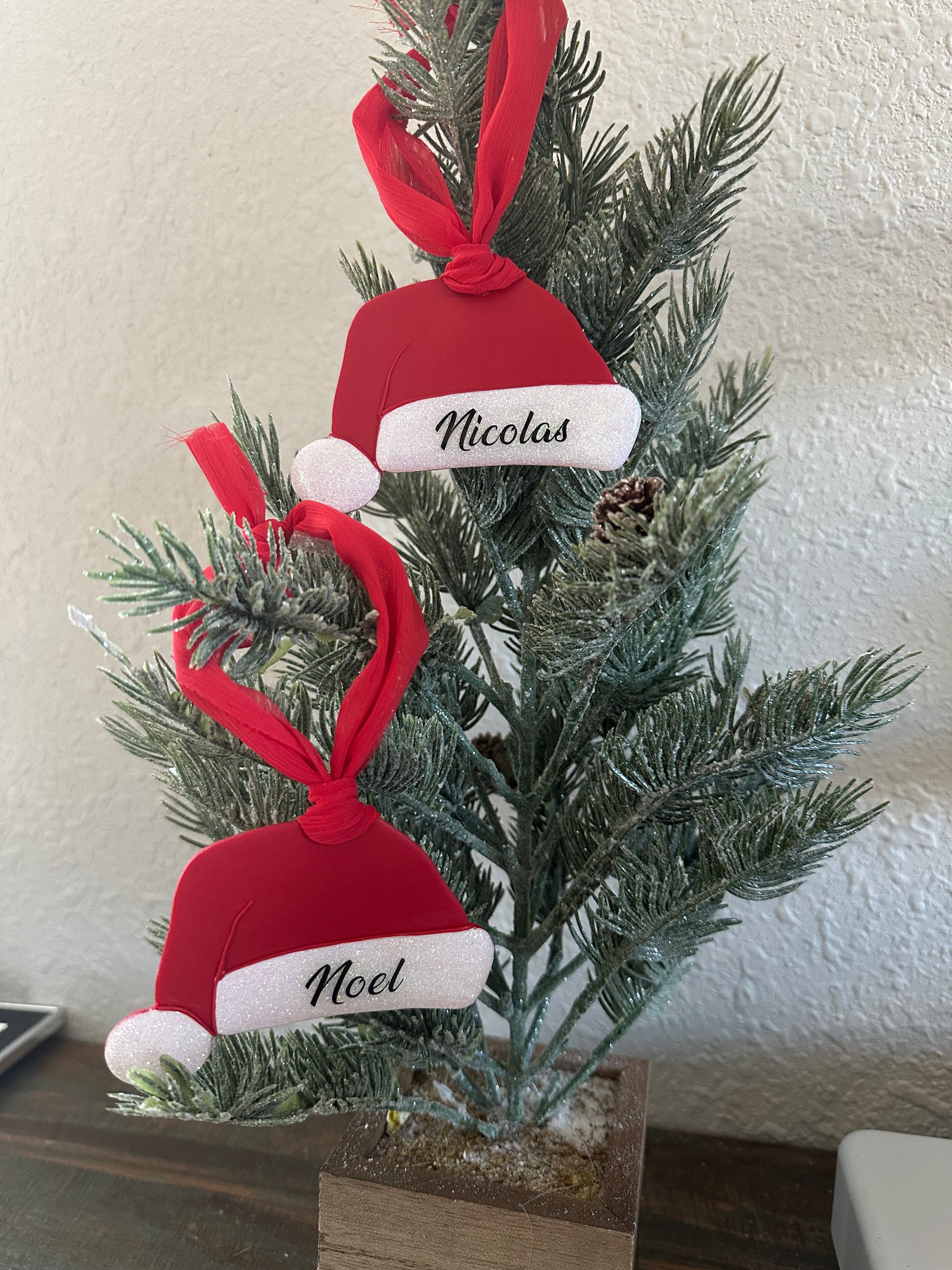 Add a touch of holiday cheer to your Christmas tree with our Santa Hats. Handcrafted from durable polymer clay and sealed with resin, this ornament can be personalized with a name for a special touch. Perfect as a gift or for your own collection of fun and unique ornaments.