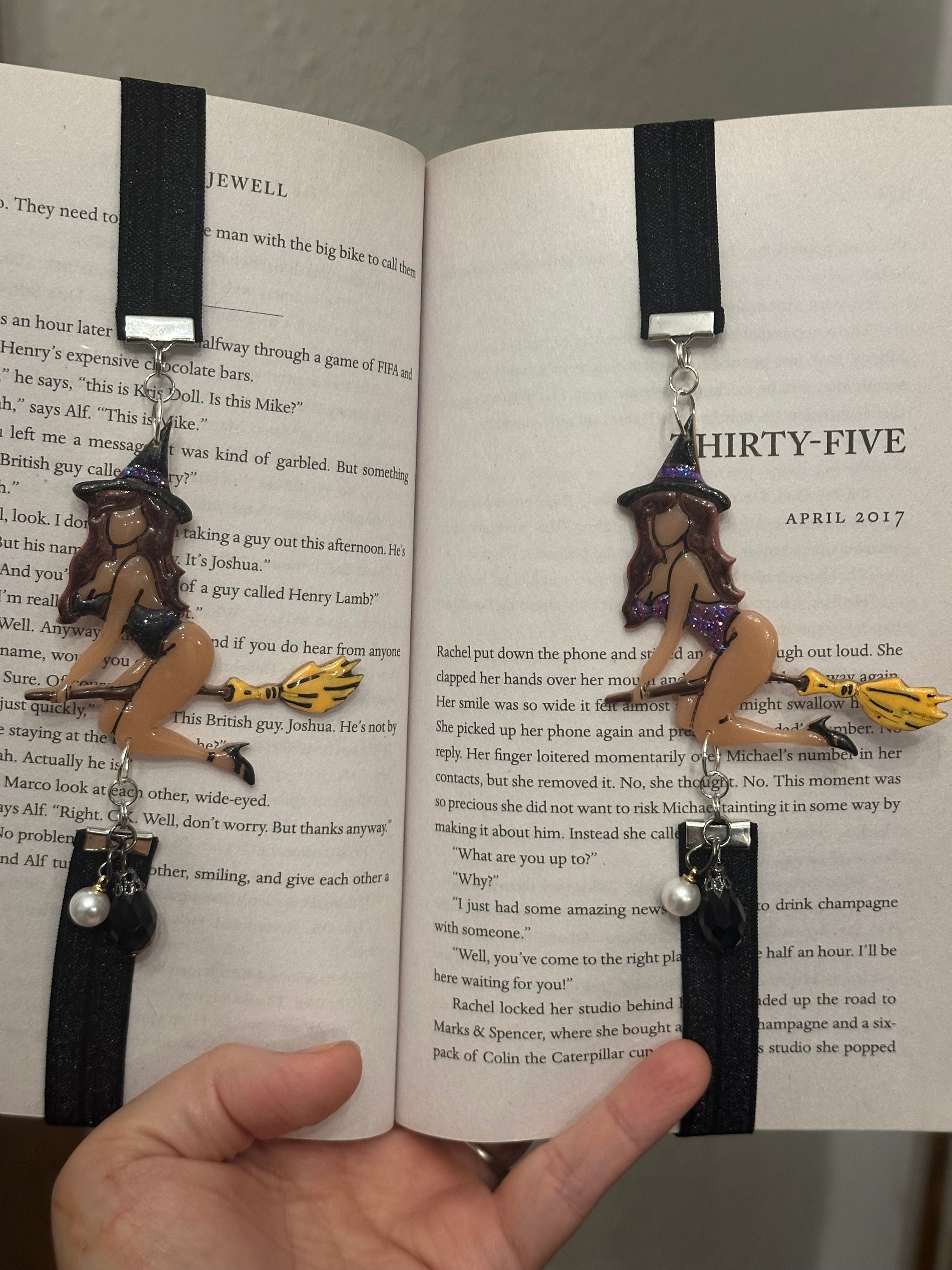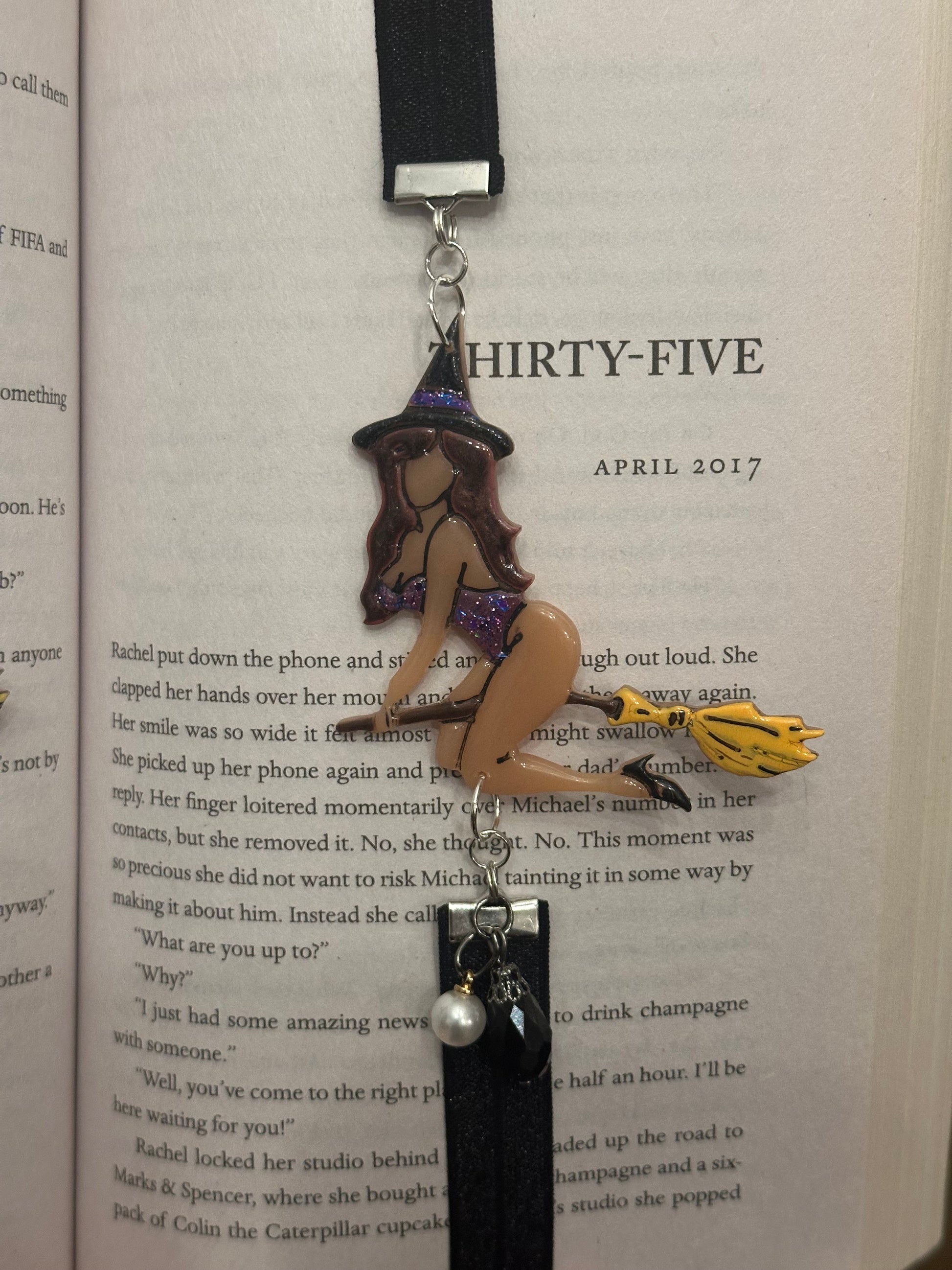 ✨ “Fly through your next chapter with this sexy glitter witch bookmark – equal parts spooky and sparkly!”