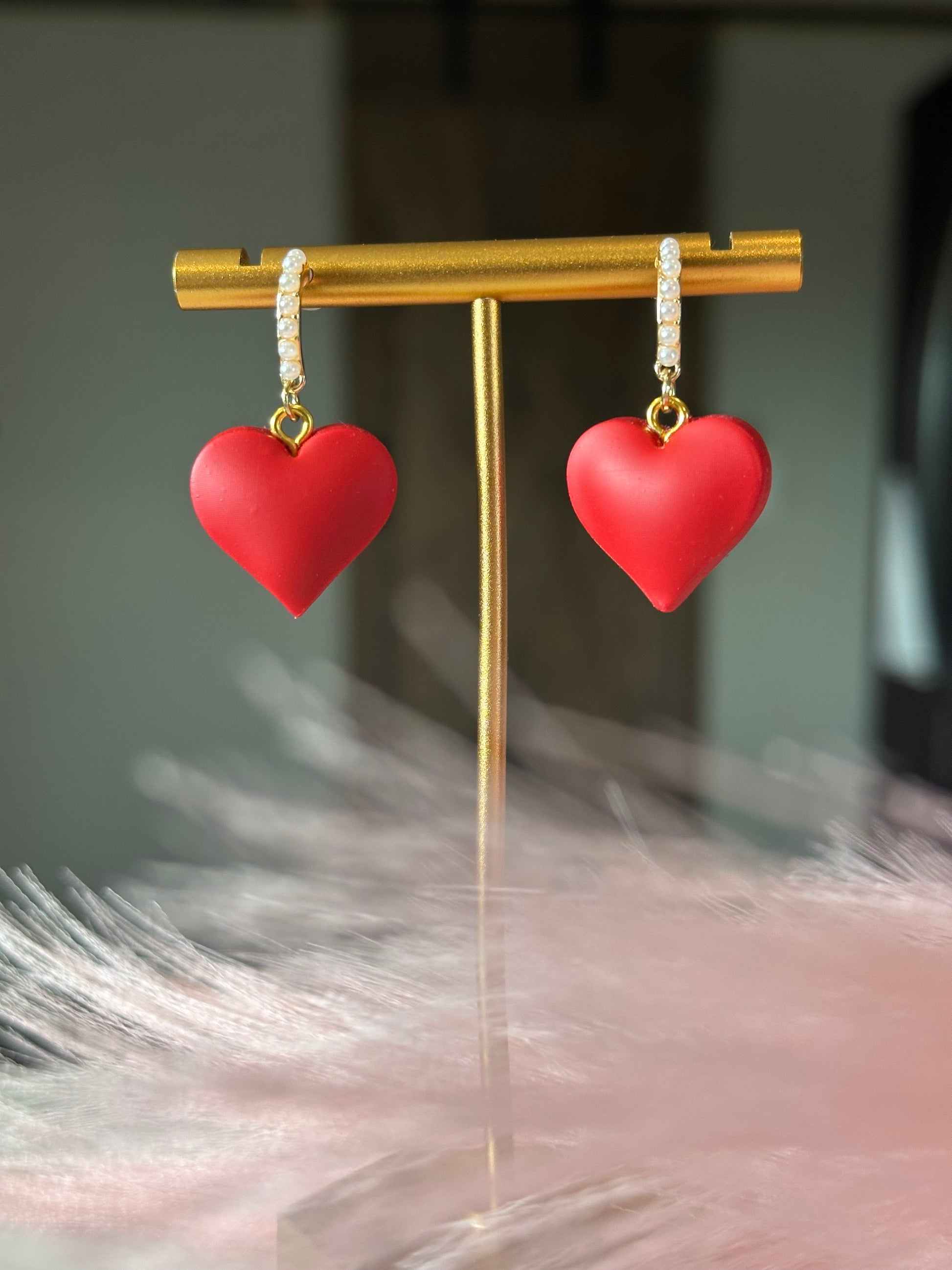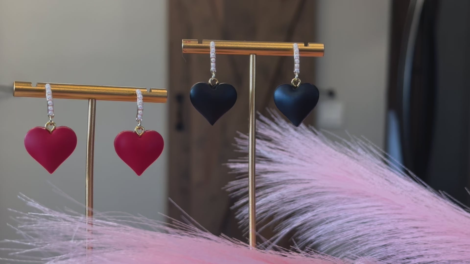 Expertly designed for everyday wear, these Small Puffy Heart Dangles are the perfect addition to any outfit. Available in red or black, these elegant clay earrings feature a delicate pearl stud attachment, making them the ideal Valentine's Day gift. With their dainty and classy design, these earrings are sure to elevate any look.