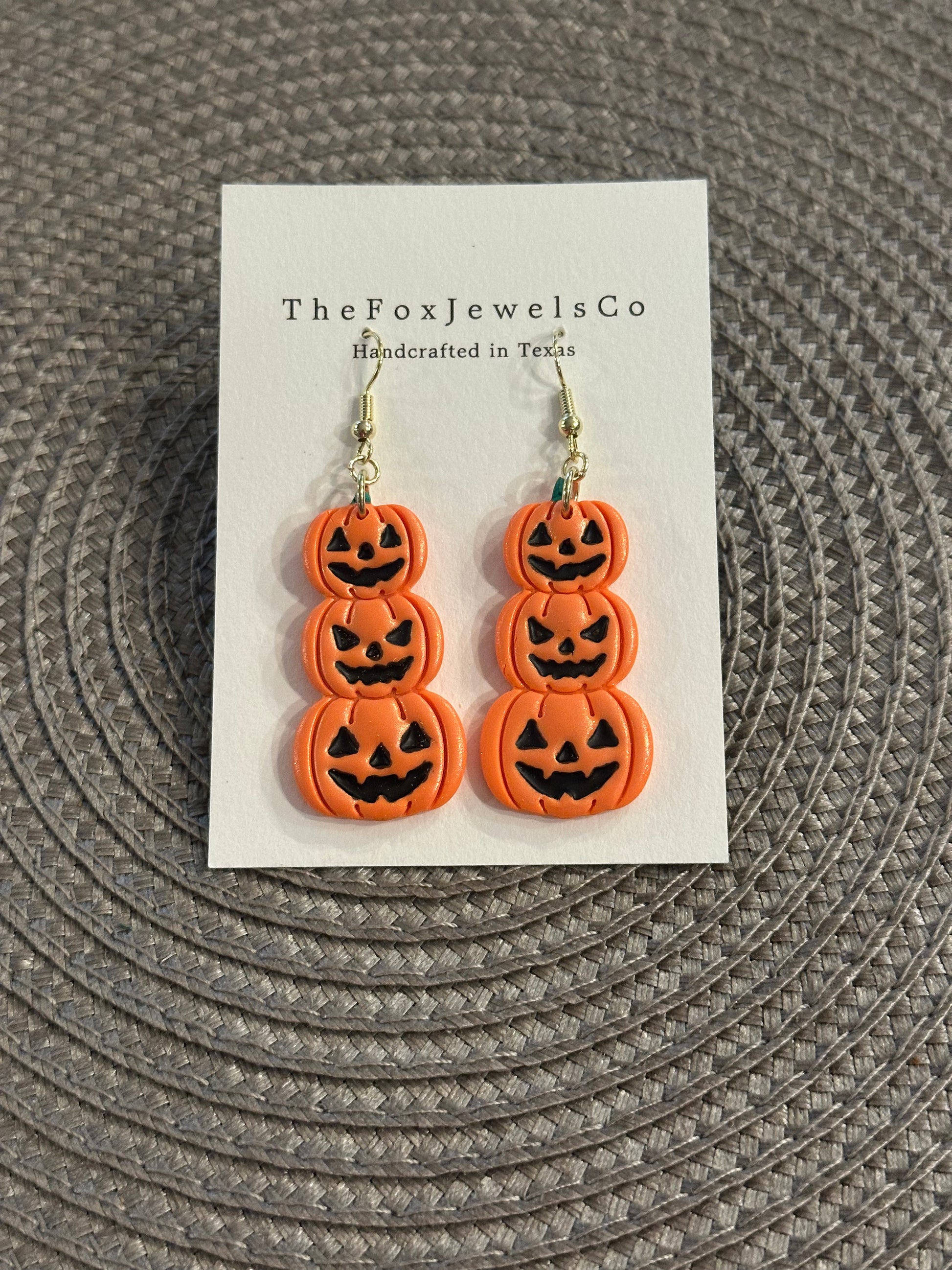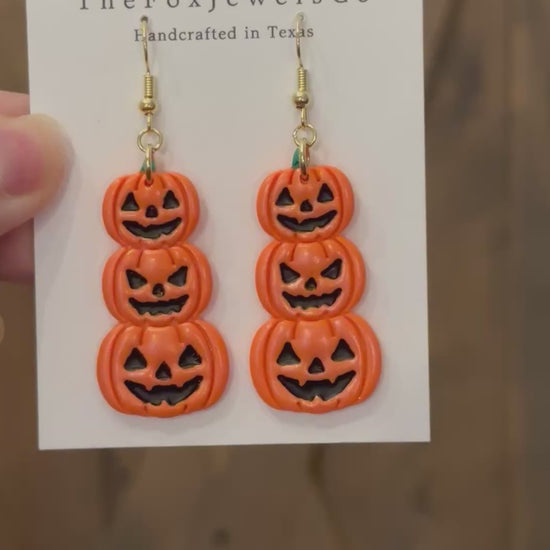 Stacked Jack O’Lantern Earrings – Handmade Polymer Clay Halloween Statement Jewelry