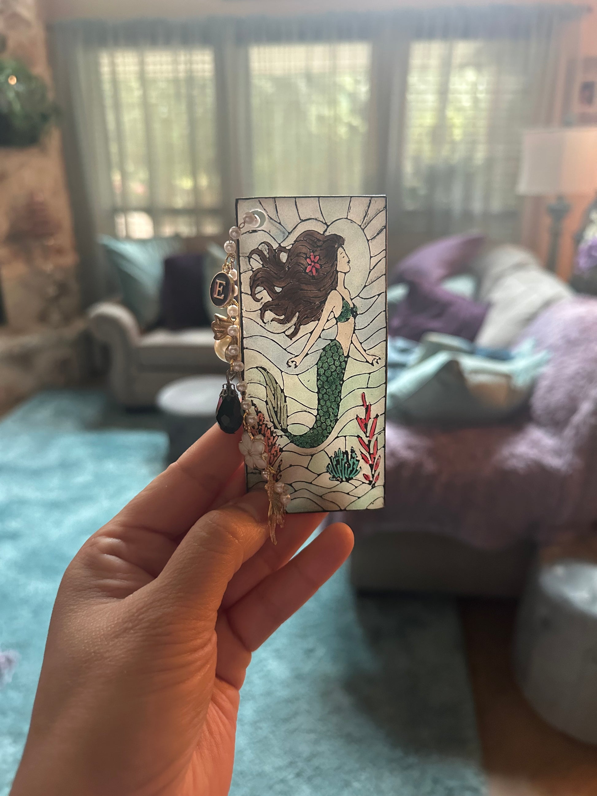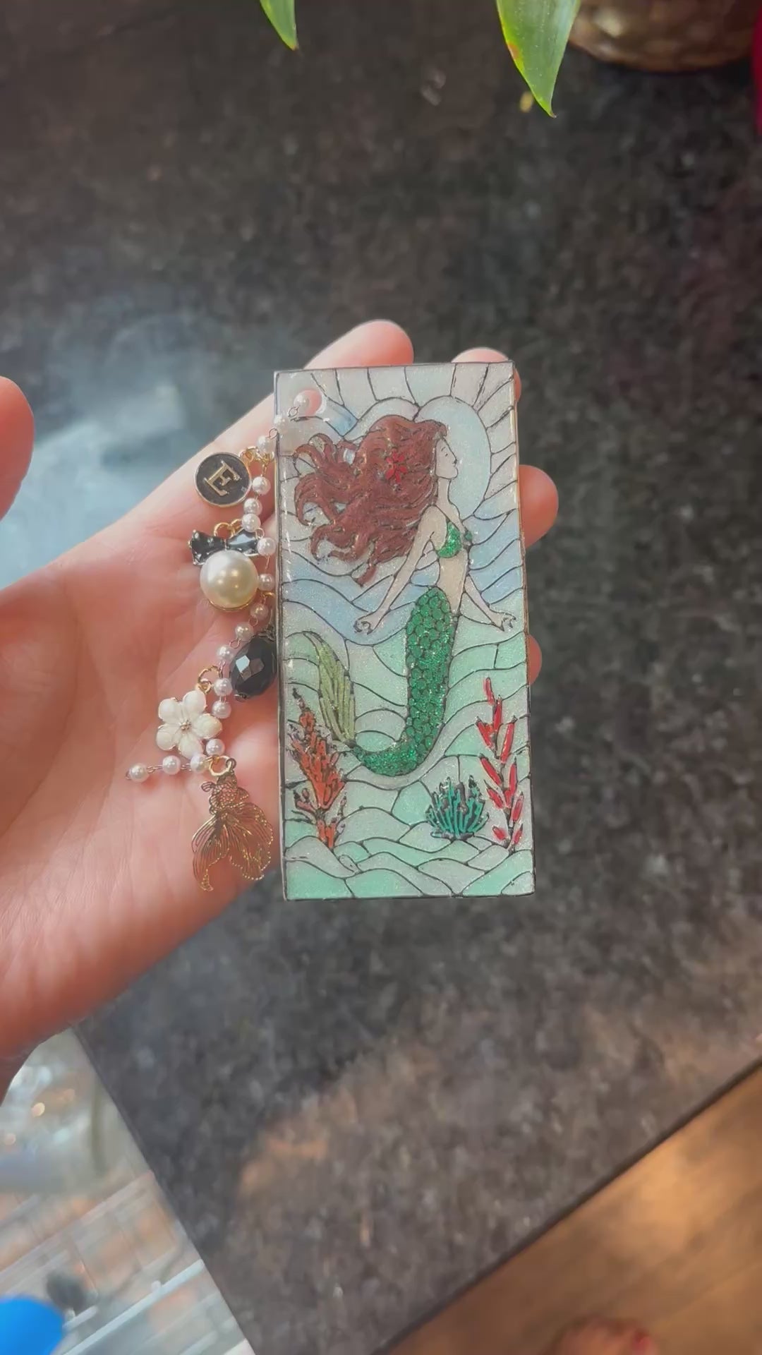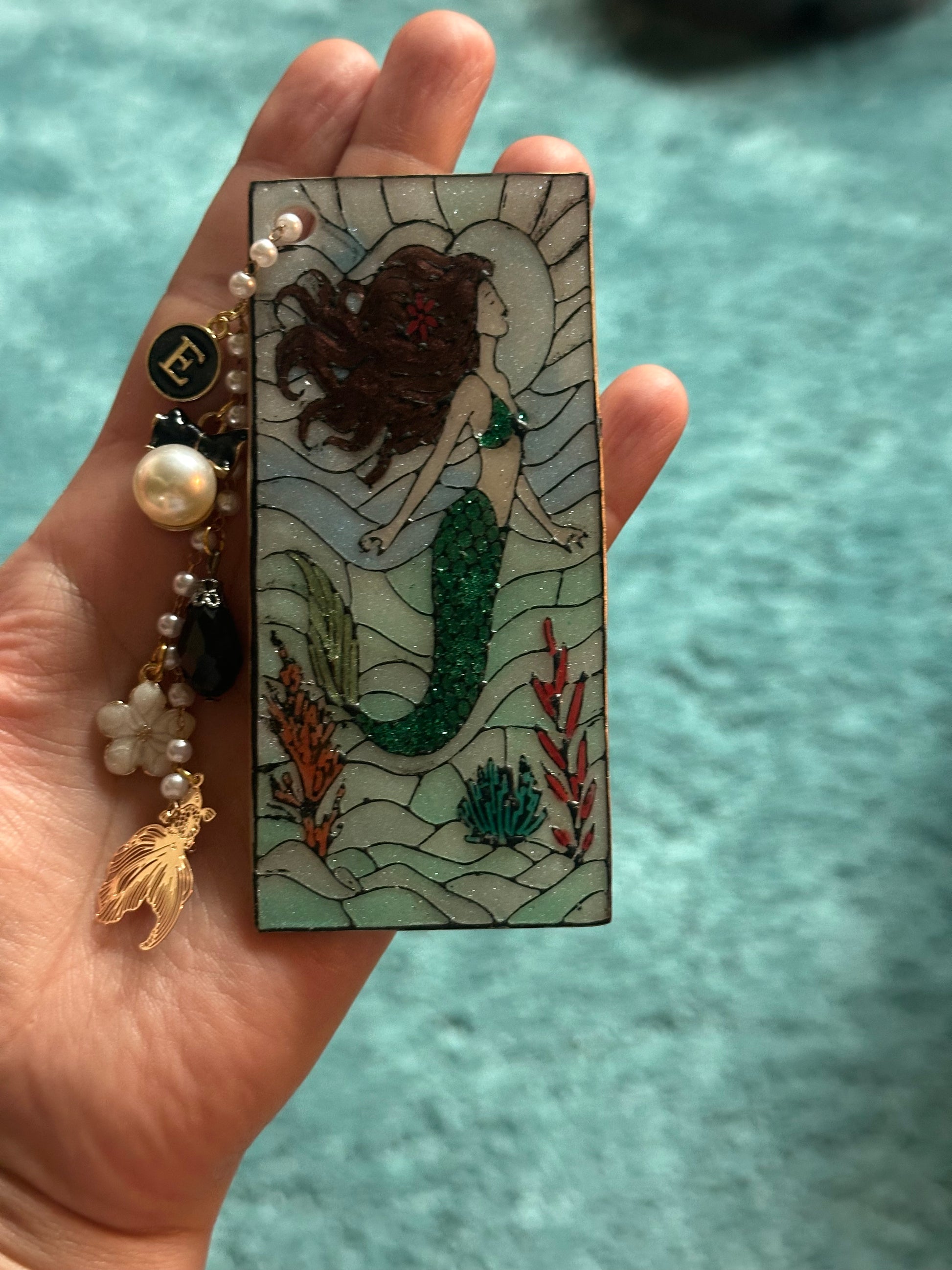 Get swept away in an undersea daydream with this handmade mermaid bookmark, crafted to resemble stained glass — but made entirely from polymer clay! ✨