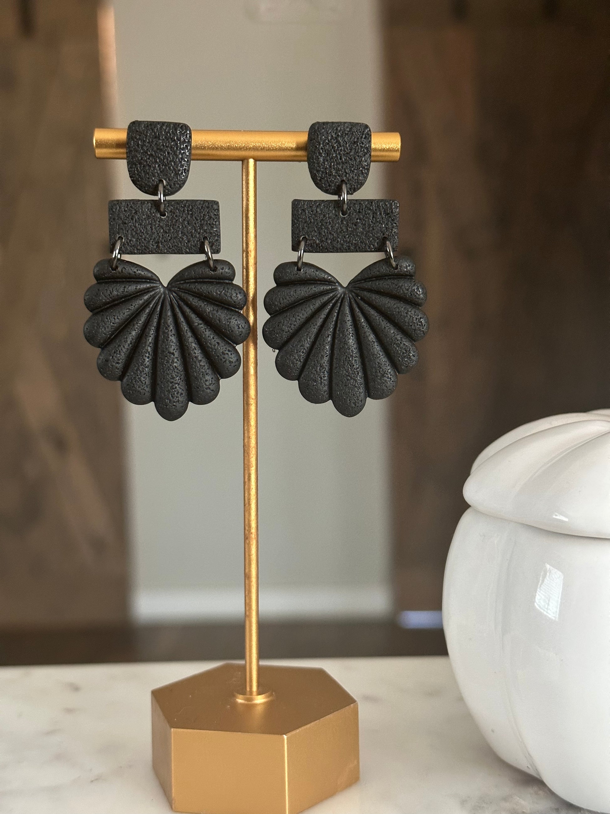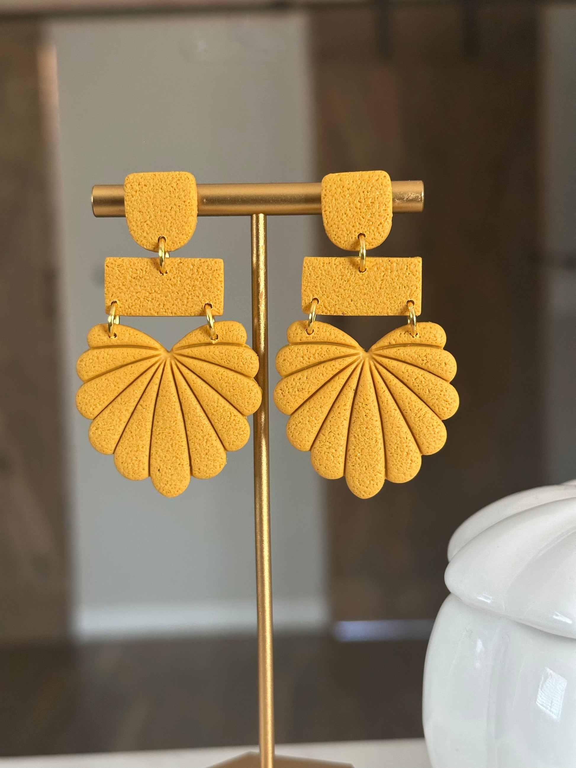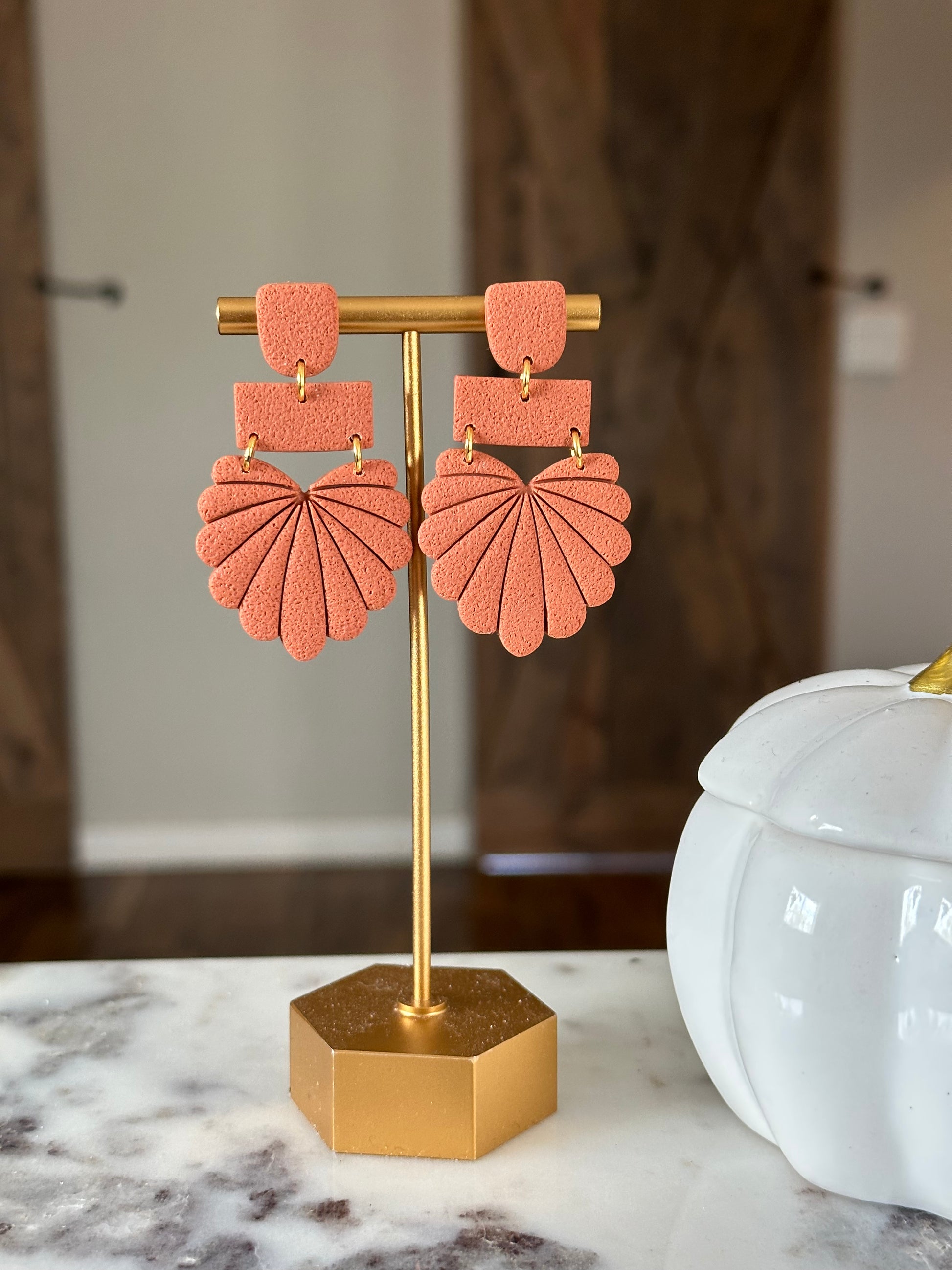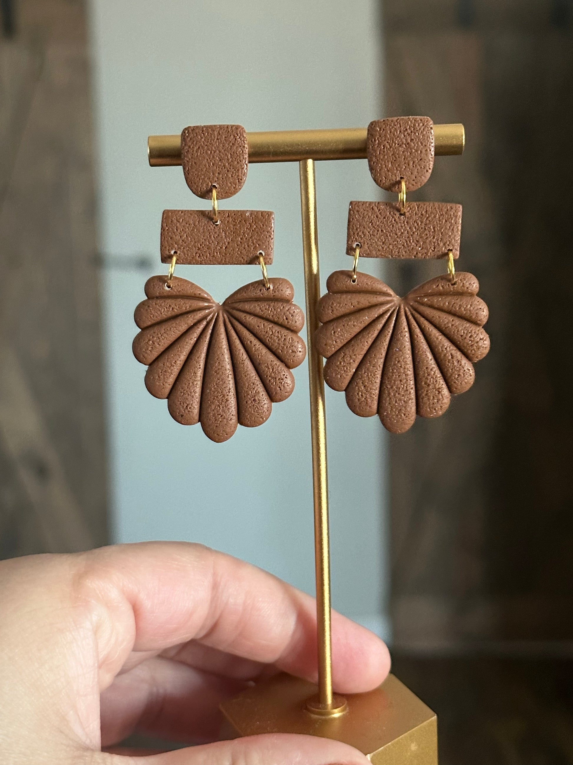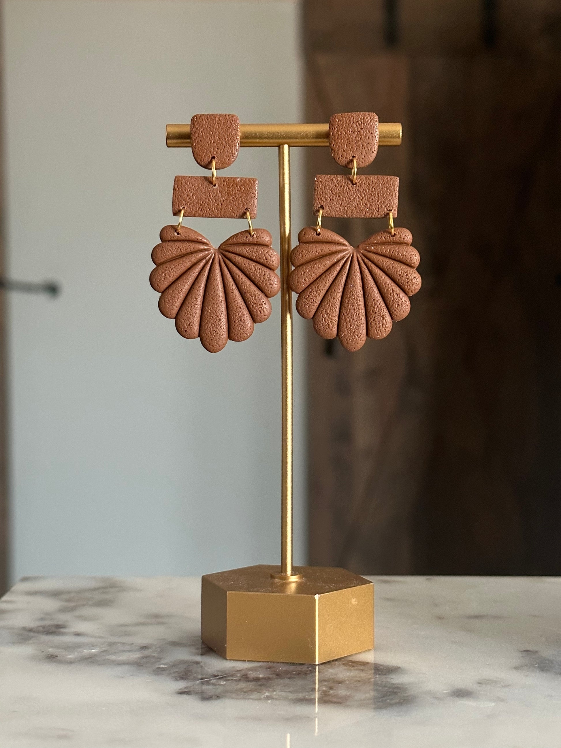 Shop handcrafted geometric statement earrings in terracotta, mustard yellow, Brown and black. Lightweight & Bold — the perfect statement jewelry for any occasion to add the perfect pop of color without weighing you down.